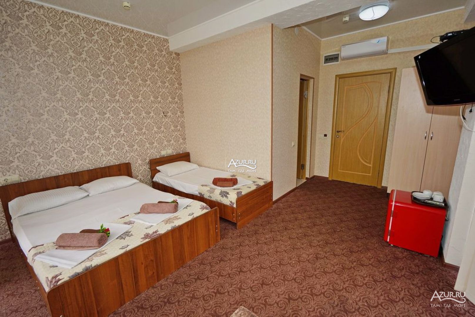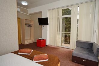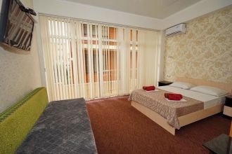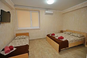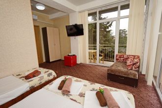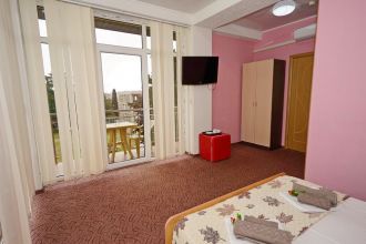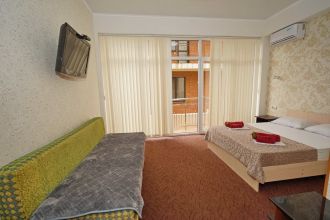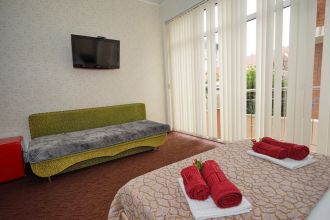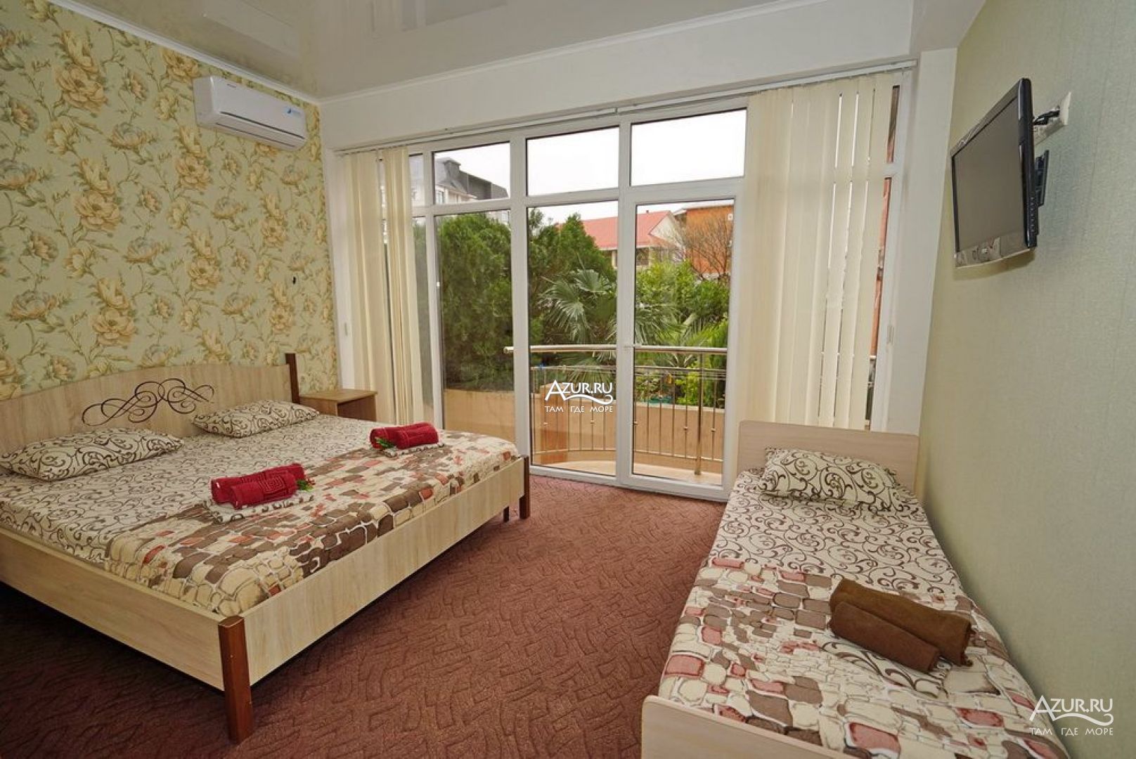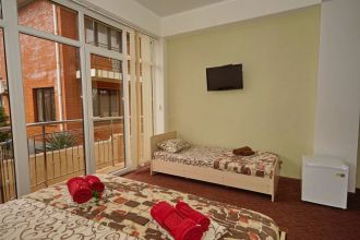 Гостевой дом с бассейном «Солнечный» предоставляет своим гостям комфортабельные 2,3,4-местные номера стандарт, а так же 2,3,4-местные номера комфорт , в которых есть все необходимое: санузел, телевизор, холодильник, кондиционер, балкон со столиками, постельное белье, полотенца.