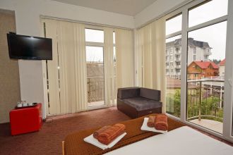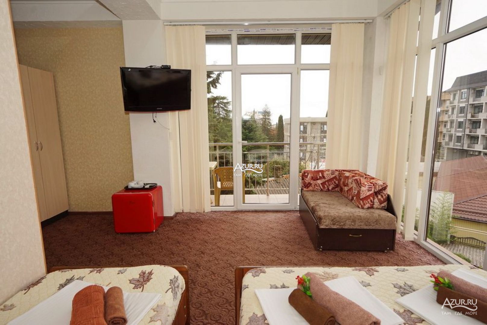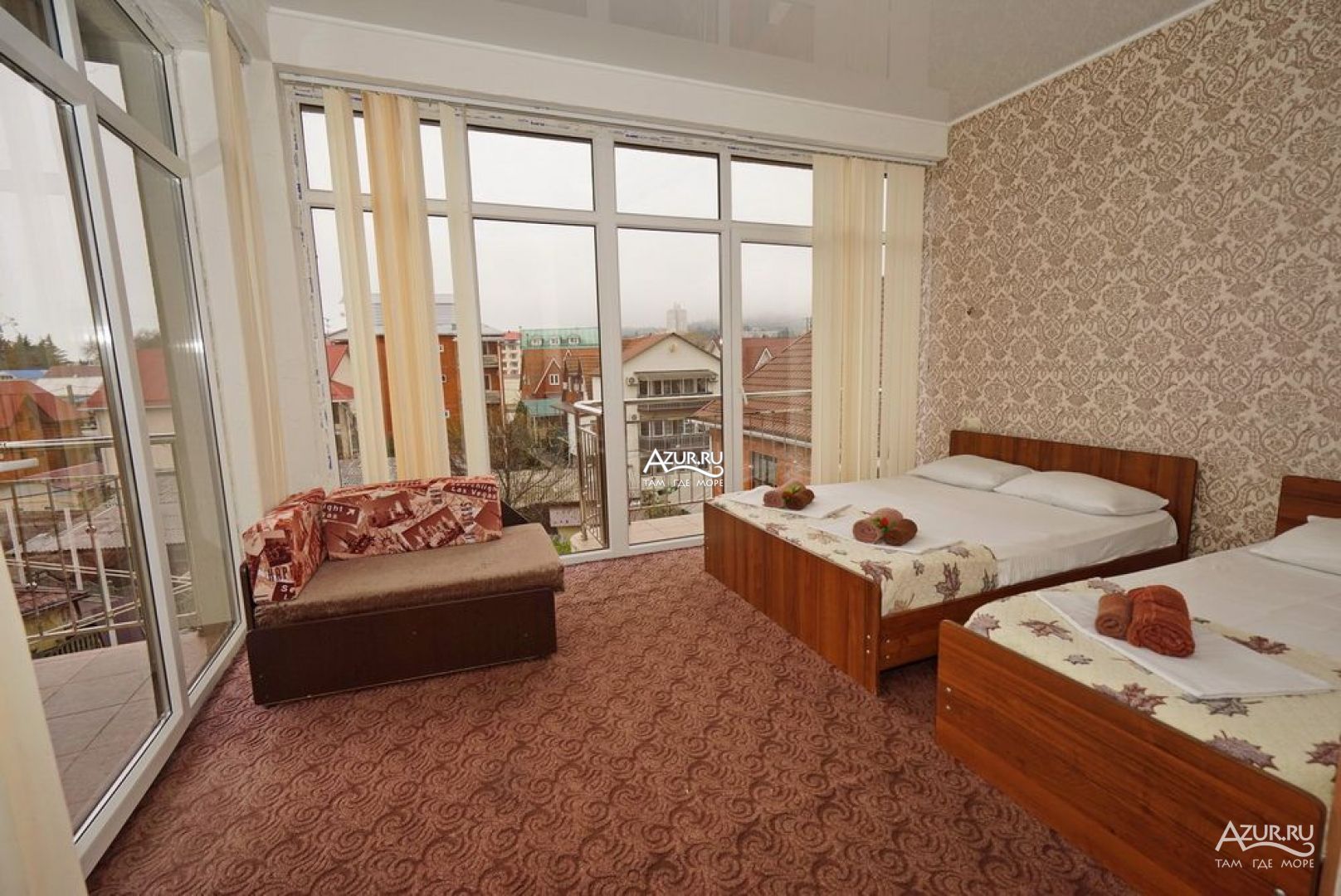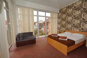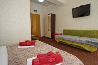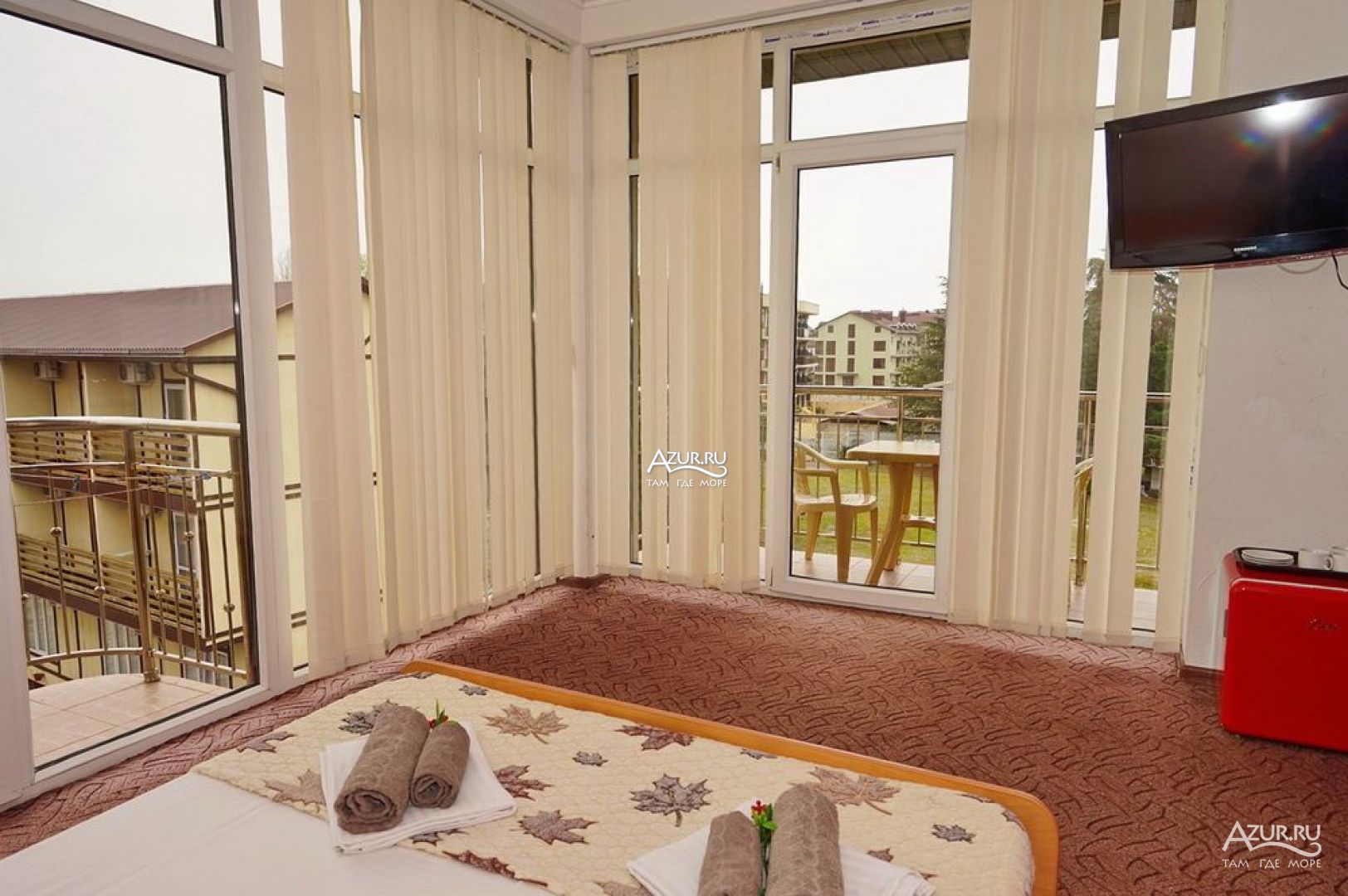 Гостевой дом с бассейном «Солнечный» предоставляет своим гостям комфортабельные 2,3,4-местные номера стандарт, а так же 2,3,4-местные номера комфорт , в которых есть все необходимое: санузел, телевизор, холодильник, кондиционер, балкон со столиками, постельное белье, полотенца.