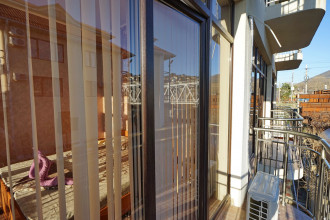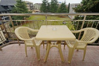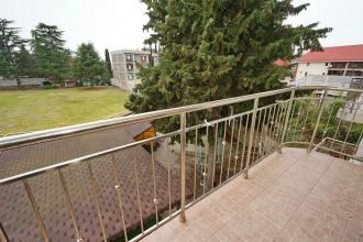 Очень зеленая придомовая территория, оснащенная мангальной зоной и всем сопутствующим для приготовления ароматного шашлыка, зоной отдыха со столиками и бассейном под открытым небом для детей и взрослых.