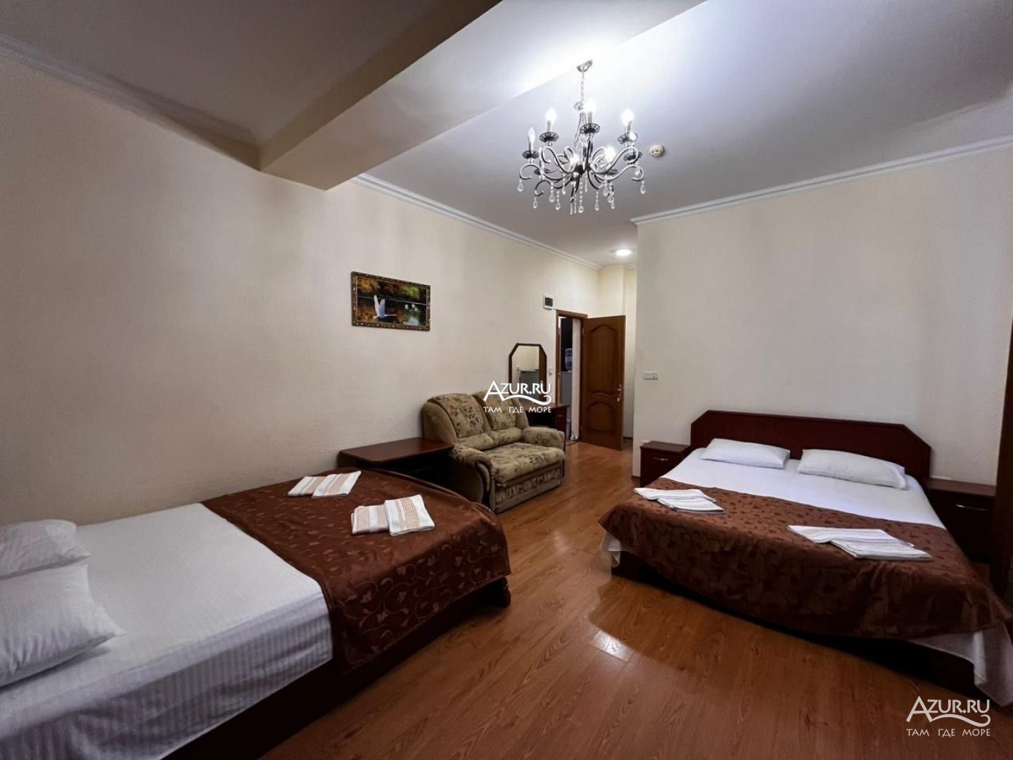 Здравствуйте. Отдыхали здесь с 20 июля по 4 августа, двое взрослых и двое детей 14 лет. Очень удобное расположение, всё рядом в шаговой доступности. Магазины пятёрочка, магнит, кафе, рынок. В номерах есть все условия для комфортного отдыха: кондиционер, холодильник, чайник, телевизор, фен, белоснежные полотенца. До моря 10 мин. Мы отдыхали в Лазаревском 5 лет подряд, но такого гостеприимства не было нигде. Хозяйка Нана очень ответственная и внимательная к каждому гостю. Нана, спасибо Вам огромное !!!