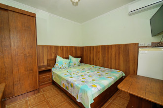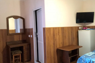 Добрый день всем! Хочу написать отзыв о гостинице «Санар» которая находится в п. Лазаревское по ул. Бирюзовой 9. Отдыхали семьей из 4 х человек (2 взрослых, ребенок 11 лет и ребенку 2,6 года) в 3х местном номере в доме на третьем этаже. Сам номер неплохой, мебель хорошая, все исправное, холодильник есть, кондиционер есть, телевизор показывает каналов 6-7, очень хорошо что есть детский «Карусель» (ребенку было чем заняться). В номере также есть душ, туалет, раковина. Теперь о минусах: полотенец нет, мыла нет, туалетной бумаги тоже нет. На полу лежит ковролин, весь «чумазый», что босиком ходить страшно. Расположение кухни очень не удобное (мы жили на третьем этаже, а кухня была за домом во дворе), на 40 номеров всего 4 конфорки, мойка тоже одна. Посуда - это что то вообще из мира фантастики. Ложки, вилки алюминиевые, и то ложек штуки 3, а вилок штук 10 на всех отдыхающих на кухне. Тарелки все со сколами или треснутые, с кружками тоже беда, их всего штук 5 (и у нас в номере была одна кружка пластмассовая и одна большая наверно на 500-600 мл, хотя номер на 3х). Еще один не приятный момент, ребенок 2,6 года проснулся рано в 6 часов, соответственно мы спустились на кухню чтобы позавтракать (это было где то около 7 часов), к нам подошел хозяин и «отчитал» нас, что так рано у нас с детьми на кухню не спускаются. Кстати, когда звонила бронировала номер, мне сказали, что балкон в номере есть, хотя по факту, чтобы дойти до балкона, надо выйти в коридор, и только потом дойти до балкона, балкон получается общий, а окно с номера как раз выходит на балкон. Короче окно настежь не открыть, так как по балкону могут ходить все подряд. Месторасположение удобное, до моря метров 250, и да парка отдыха и культуры метров 200. Номер сутки стоил 3200 (как для меня это недешево), приезжали мы на 5 суток и считаю, что за эти деньги, должна быть та же туалетная бумага, мыло и полотенца. Отдыхаем уже не первый год и гостиницы видели разные, были и дешевле, но условия были получше. В эту гостиницу больше не приеду.