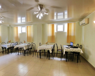 Номера все с удобствами 2-х, 3-х местные и 2-х комнатные. В цокольном этаже здания расположена столовая, где можно по желанию заказать завтрак и обед.