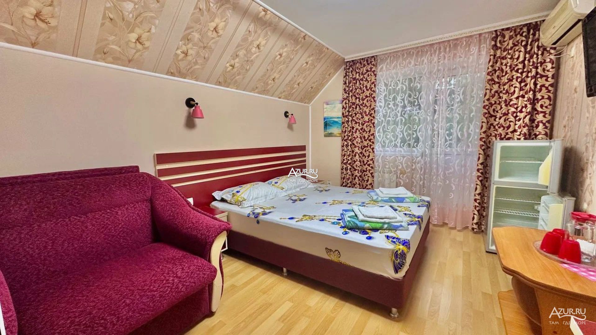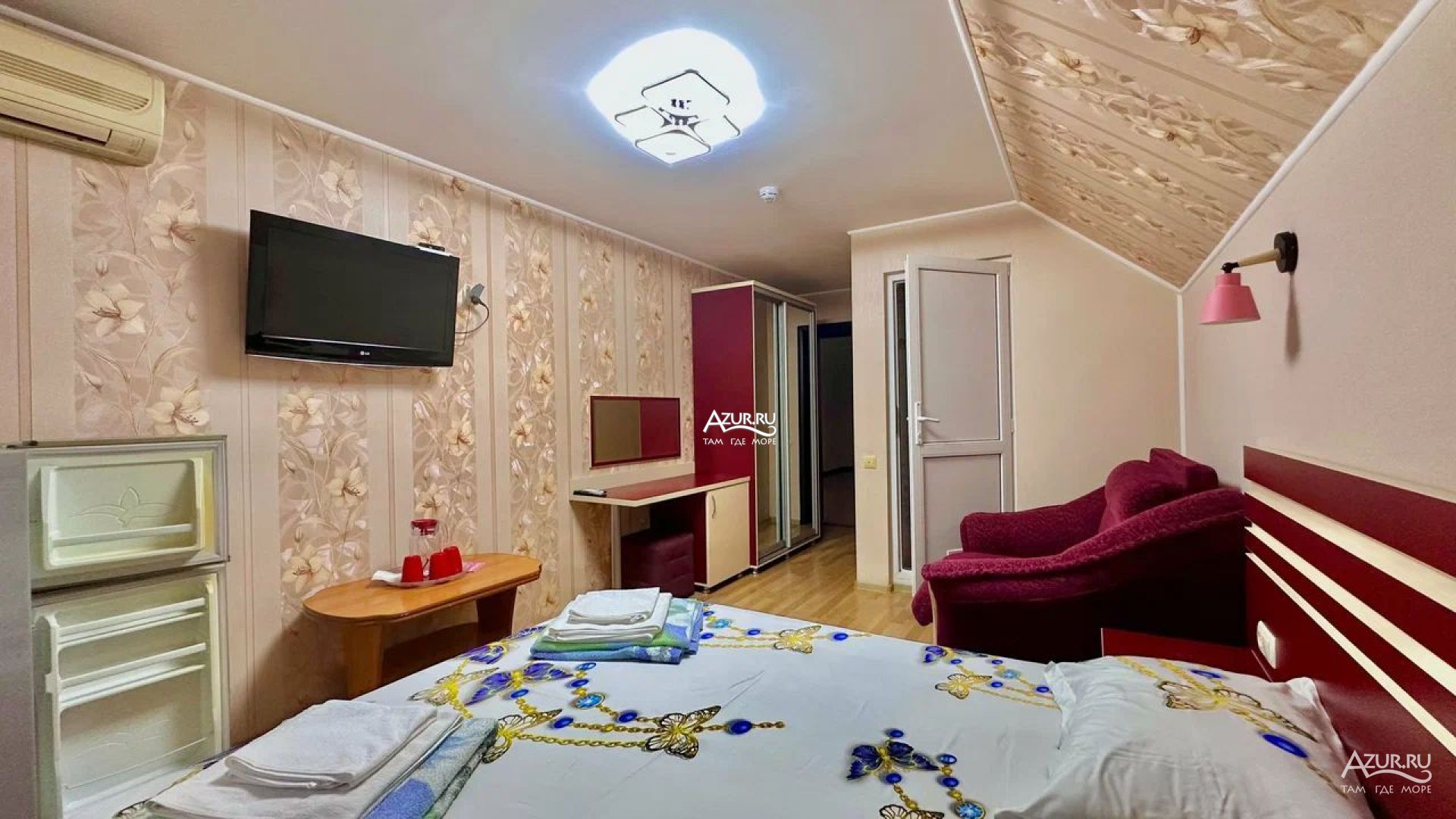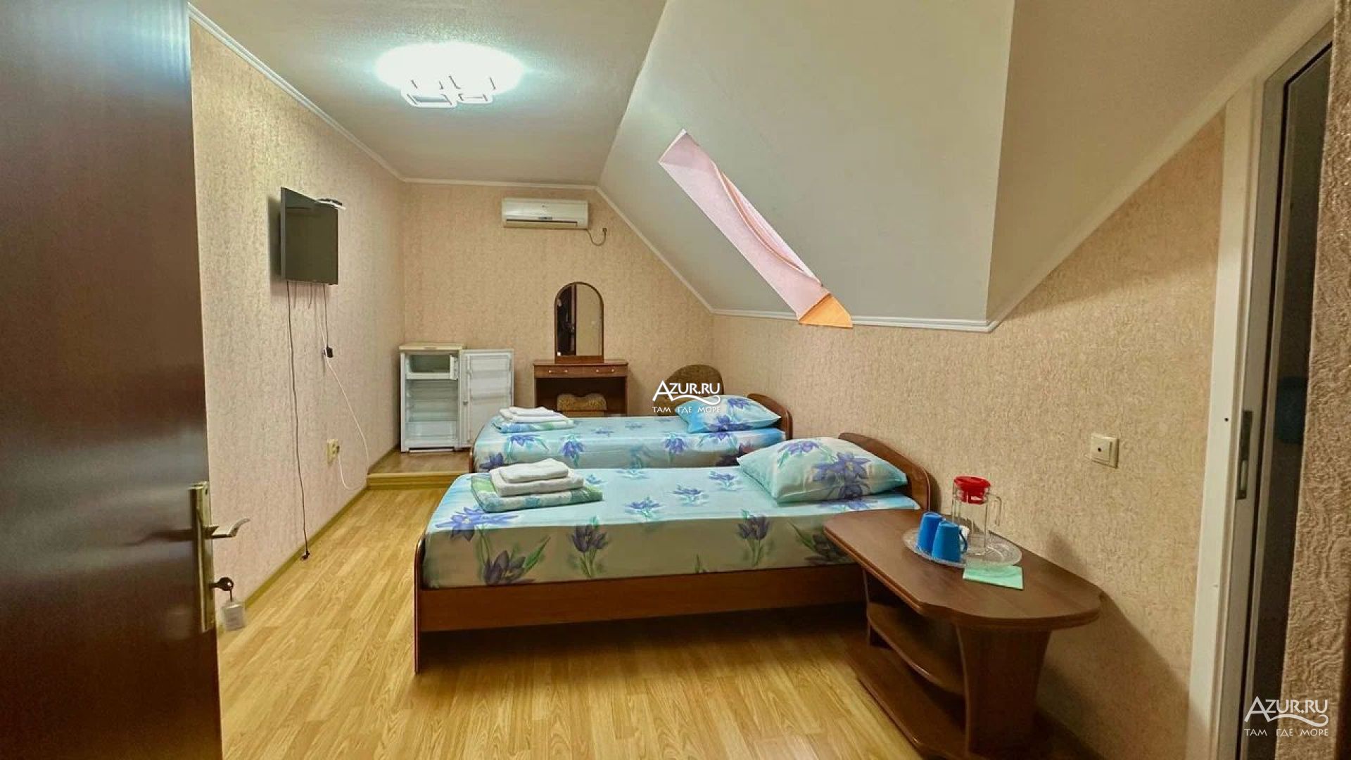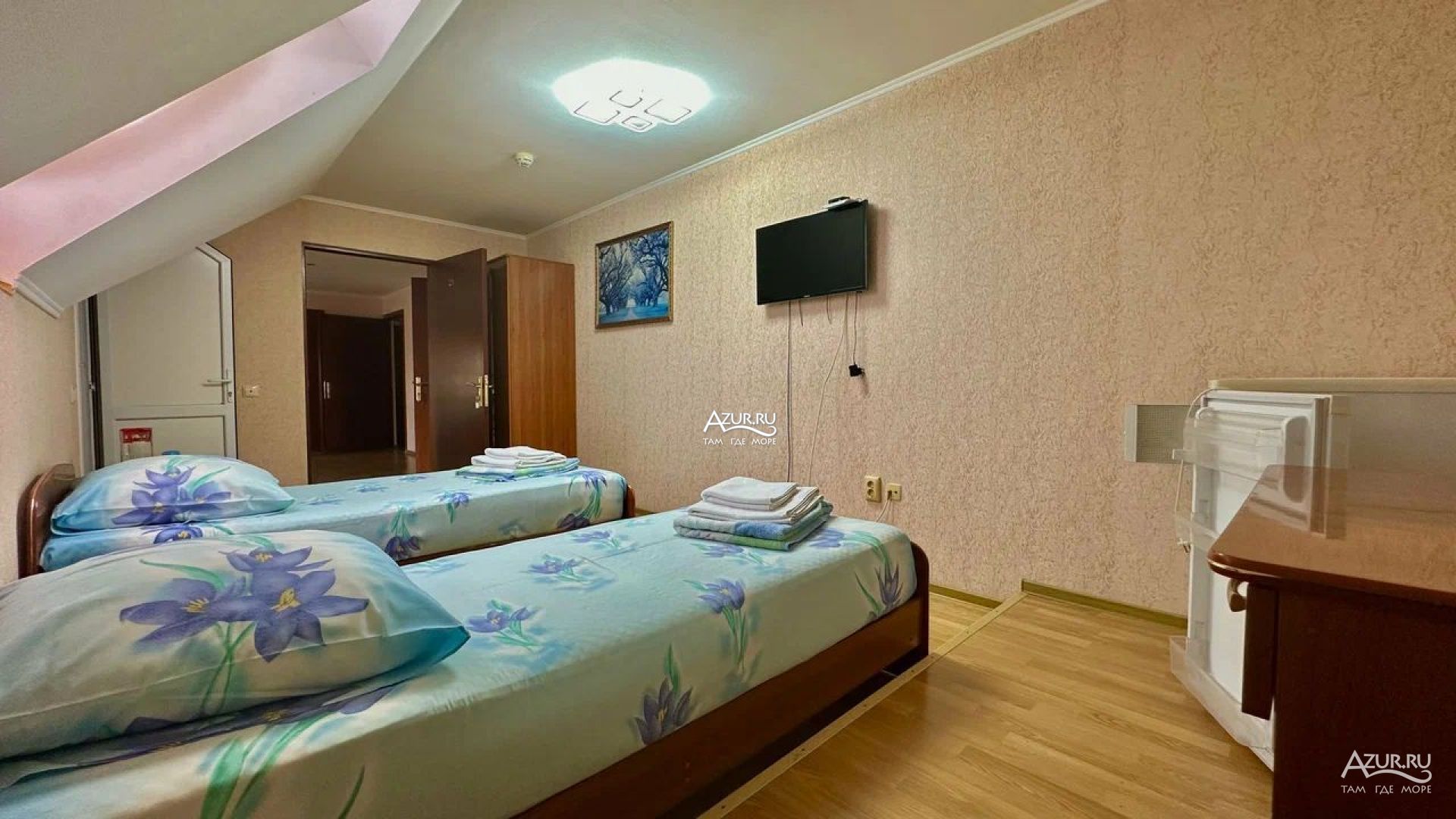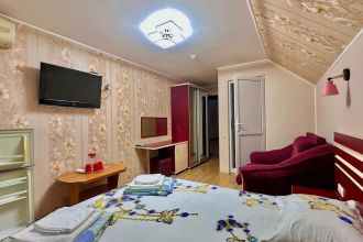 Отдыхали в этом отеле с 10 по 22 сентября 2021г. Всё очень понравилось, жили в 2х-местном номере в мансарде. Всё необходимое есть - кровати удобные, шкафа на двоих хватило с лихвой, столик, кувшин для воды, чашки, туалетный столик, пуфик. Холодильник, кондиционер, все исправно работало. В ванной комнате не хватало тряпки для пола, так как нет шторки, после принятия душа хотелось протереть, чтобы было сухо. (я думаю, если бы попросили, нам бы не отказали, но не стали беспокоить). В остальном все на высшем уровне. На этаже столик с электрическим чайником, гладильная доска с утюгом, сушилка для белья. Очень понравилось, что на каждом этаже по 2 огнетушителя, есть камеры. Очень хорошая звукоизоляция - соседей не слышно совсем, это огромный плюс. До моря 5-7 минут, через парк. Рядом отличная столовая. Планируем приехать в Лазаревское ещё, так что только в этот отель!