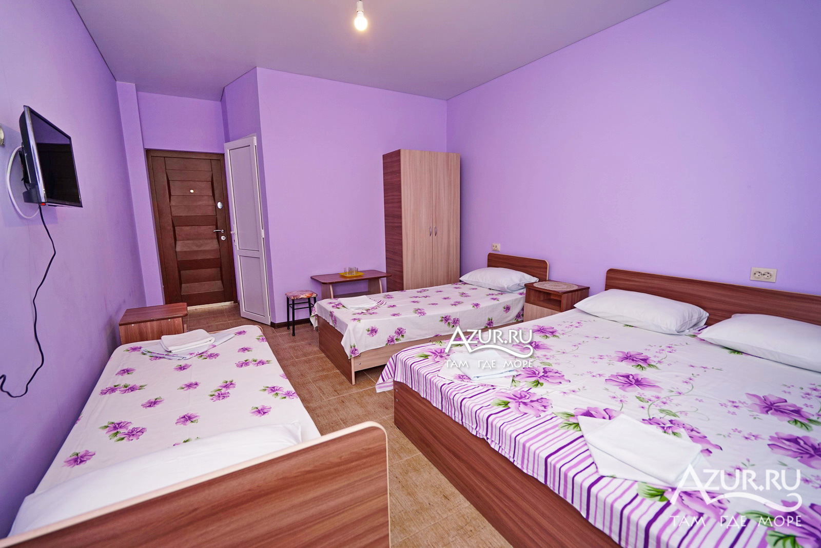 Мебель: три односпальные кровати, шкаф, стулья, тумбочки, столик