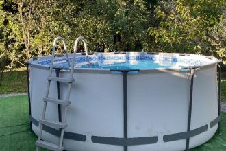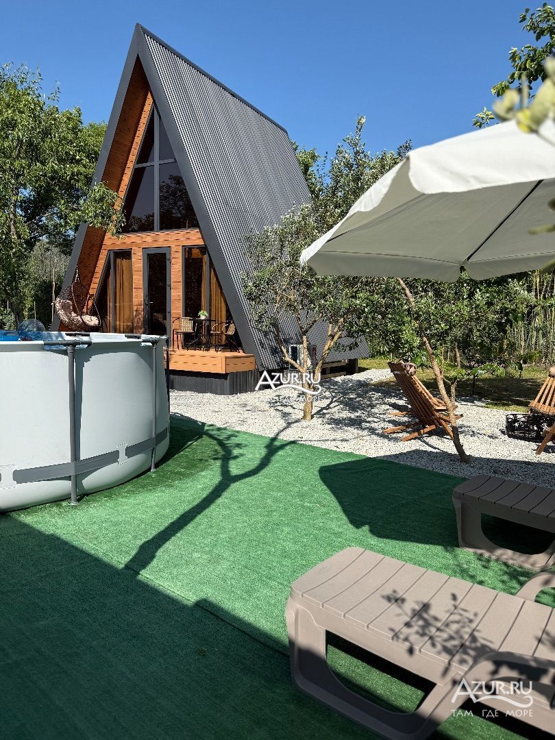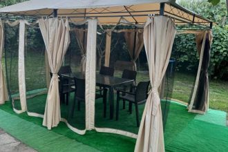 В садовой части находятся бассейн, большой зонт и просторный шатёр , где вы можете позавтракать или провести тёплый и приятный вечер в кругу близких людей.