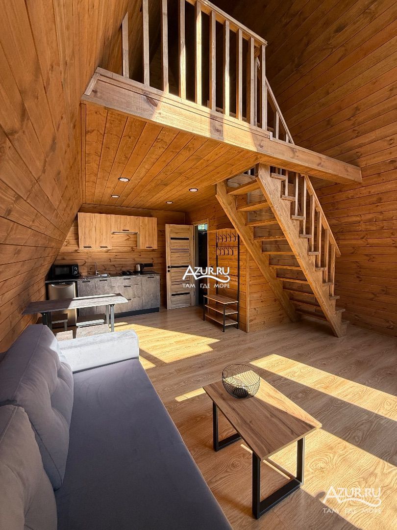 Мебель: большой диван 140х200, подвесной телевизор, сплит-система, стол и стулья, обувница, вешалка для одежды, утюг, гладильная доска, тумба под телевизор. На втором этаже расположены: двуспальная кровать 200х140, две прикроватные тумбы, ночники.