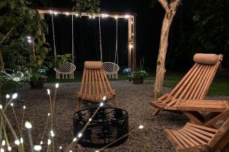 На территории имеются качели и гамаки. Садовая мебель Кентукки, где по вечерам вы можете разжечь костер и пожарить маршмэллоу или сосиски. На территории так же располагается гостевой дом с номерами стандарт и люкс.