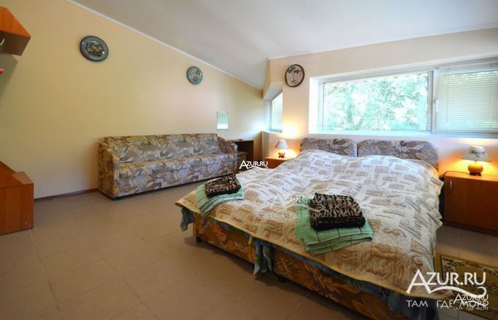 Мебель: двуспальная кровать, два диван-кровати, тумбочки, вешалки, шкаф платяной