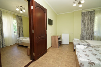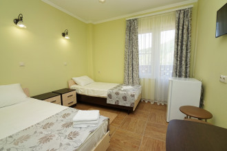 Номера со всеми удобствами, рассчитанные на 2-х , 3-х и 4-х местное проживание, оснащены всем необходимым для комфортного пребывания гостей. Регулярно проводится влажная уборка номеров, смена постельного белья и полотенец. Имеется оборудованная кухня- столовая, на территории есть бассейн,мангальная зона, детская площадка, беседки, велосипеды,теннисный стол, бильярд, бадминтон. Территория гостевого дома уютная, облагороженная, есть автостоянка.