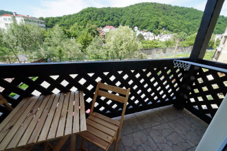 Доброго времени суток! Отдыхали с дочерью в Каштане в Ольгинке в августе 2020 года. Впечатление превосходное! Приехали автобусом в 5:30 утра, с дороги разбитые, нас тут же заселили в номер. Андрей, администратор, добрейшей души человек, предоставил все условия для отличного отдыха. Все показал, рассказал, везде проводил. Приятно удивило наличие посудомоечной машины, бесплатная стирка, бесплатный прокат велосипедов, самокатов, бесплатный бильярд, теннис, мангал, зонт для пляжа и т. д, казалось, все о чем не подумаешь, пожалуйста, как по волшебству. Белье белоснежное, ни пятнышка, вид с балкона на горы, потрясающий, магазины Пятерочка прямо на пляже, Магнит 5-10 минут ходьбы. Отелю ставлю твёрдые 4 звезды. А персоналу 5! Море чистейшее, пляж галечный чистый, 200 руб если надо лежак на день под навесом. До моря идти минут 15-20 с ребёнком, мы с удовольствием гуляли два раза в день на пляж, и даже скинули несколько килограммов!!! Половину пути прогулка по теньку, одна треть по лавочкам рынка. Люди очень добрые вокруг, это очень потрясло, все расскажут, покажут, (давали что-то бесплатно на рынке, говорили деньги завтра принесете)... Ольгинка - место куда хочется вернуться!!!Что мы и собираемся сделать в этом году, теперь уже полной семьёй!!! А отель привлек своим комфортом и отдаленностью от шума и суеты. Рекомендую для семейного, спокойного отдыха!