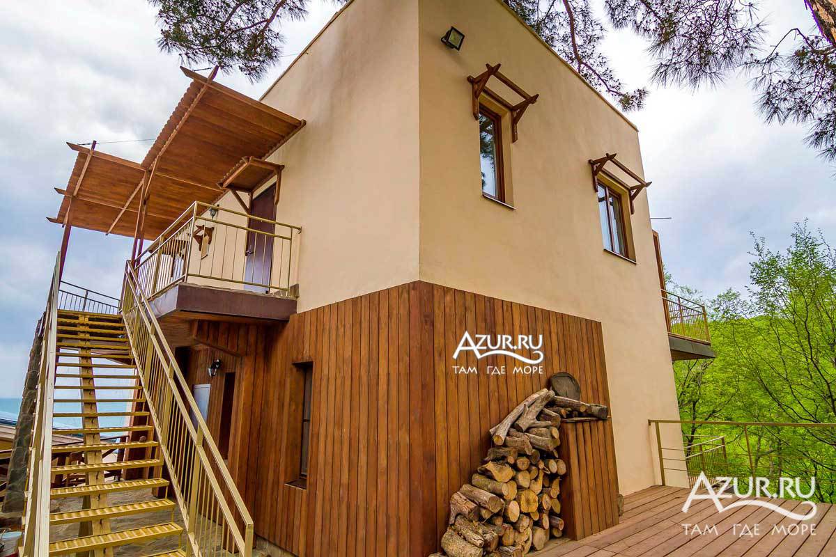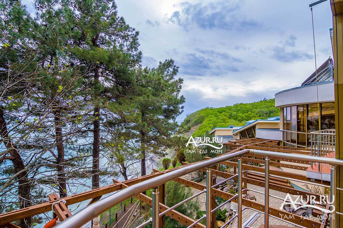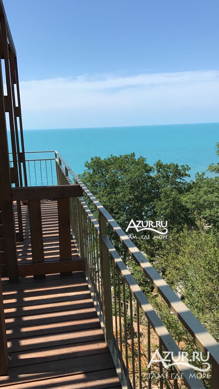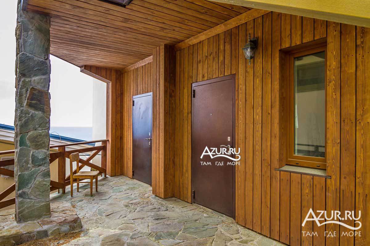 Люкс - номер 8 (к.2) - 2-х комнатный номер с деревянной террасой к.2 (вид на горы, вид на море), общая площадь номера 44 метра + терраса 20 метров. Возможно размещение 3+1. Террасное оборудование на террасе.