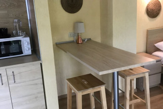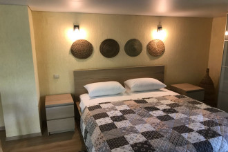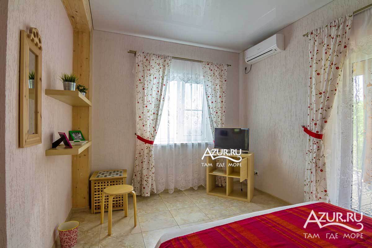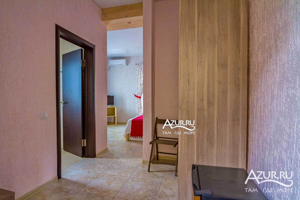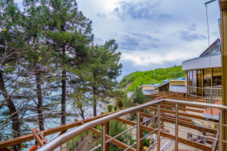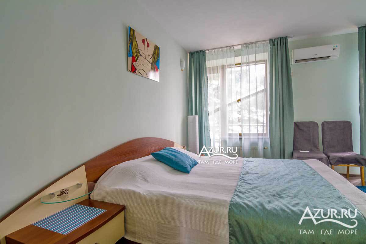 Люкс - номер 8 (к.2) - 2-х комнатный номер с деревянной террасой к.2 (вид на горы, вид на море), общая площадь номера 44 метра + терраса 20 метров. Возможно размещение 3+1. Террасное оборудование на террасе.