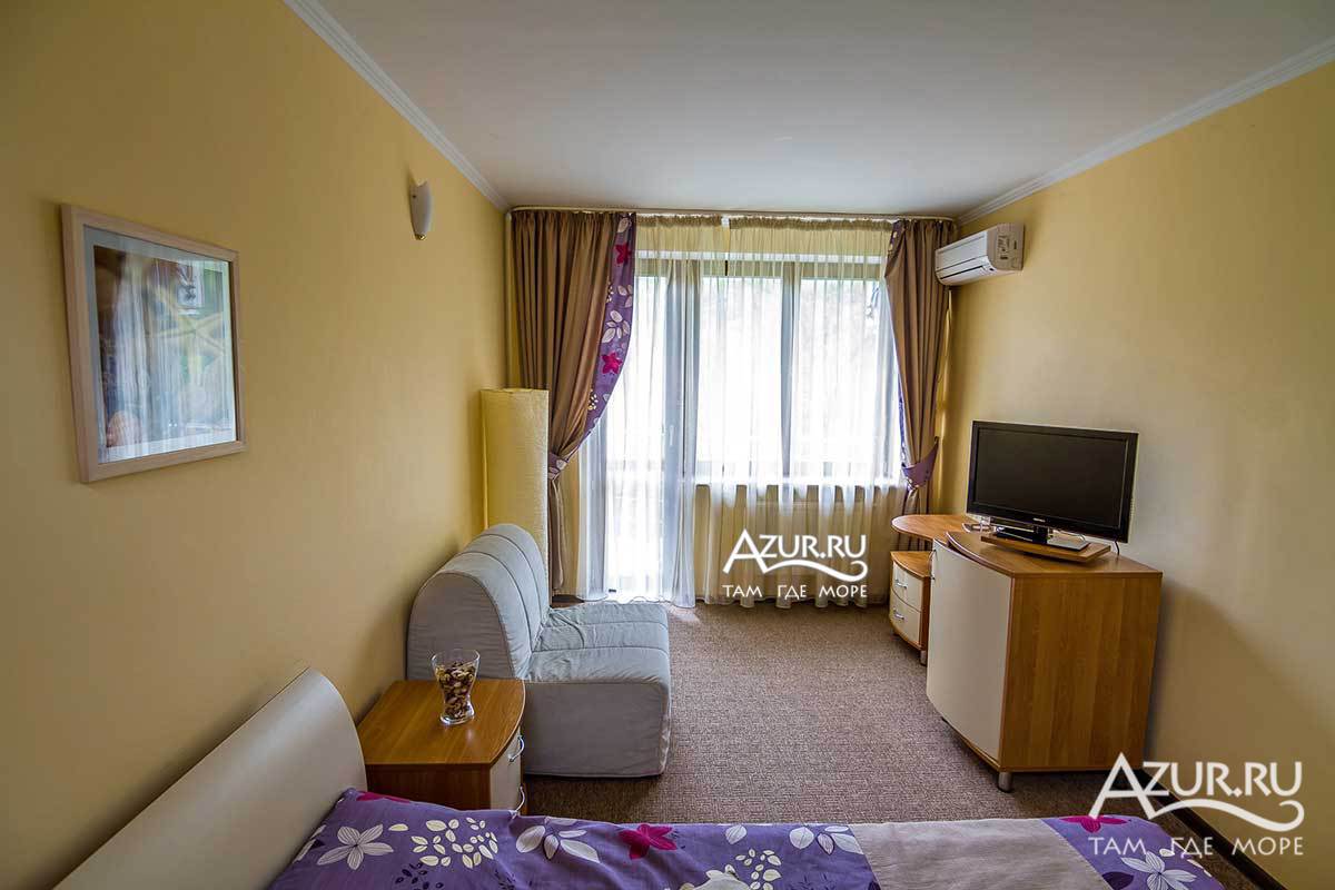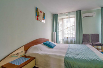 Отель расположен всего в 250 метрах от моря (на высоте 32 м. от уровня моря) и имеет прямой выход к пляжу по тенистой дорожке. Рядом находиться ОК "Орбита", что позволяет разнообразить ваш отдых посещением детского мини-клуба, открытого бассейна, а также закрытого водного комплекса.