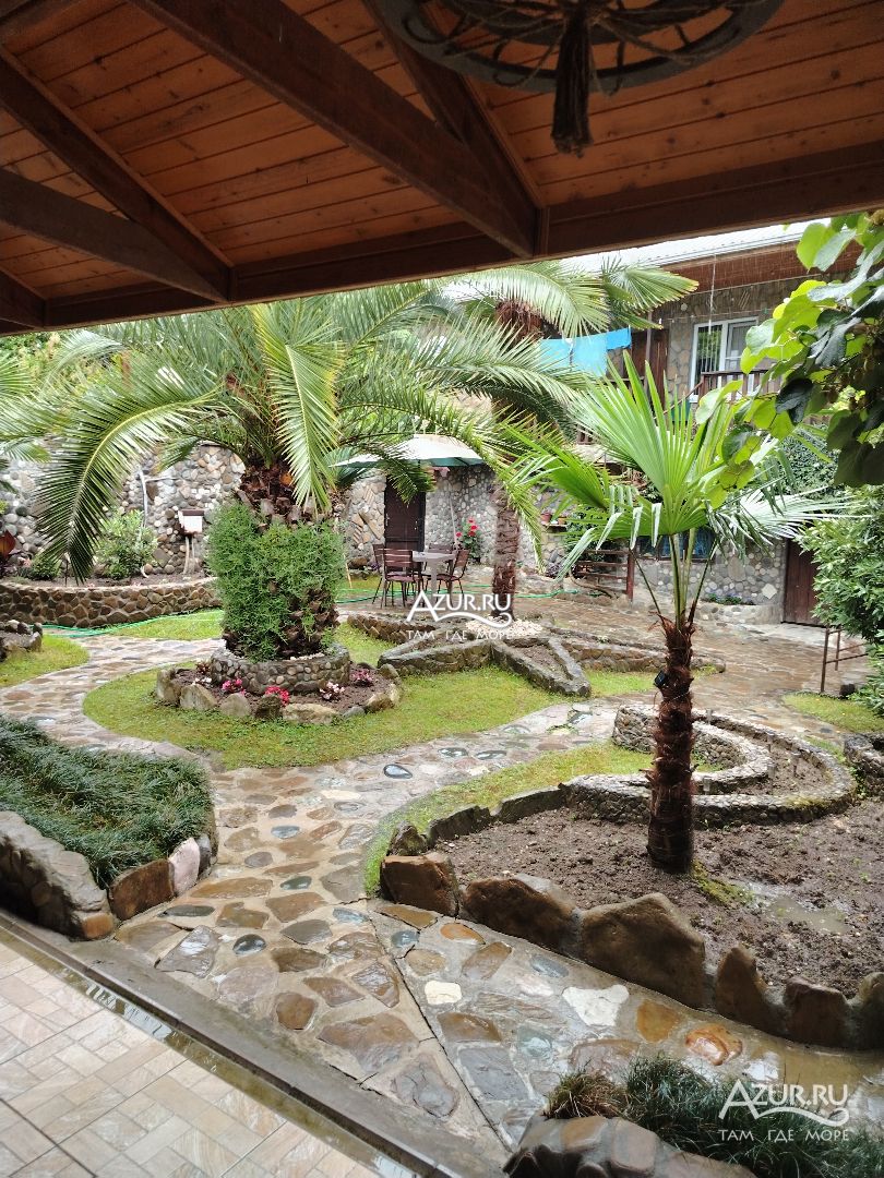 В Абхазии первый раз отдыхала с мамой и тетей.Очень долго выбирала где отдохнуть мне кажется я про все места в Абхазии прочла.Но остановилась на этом доме. Мне хотелось тихого семейного отдыха. Ия вам скажу я сделала правельный выбор.Прилетев в Адлер нас встретил хозяин Сергей довез нас с границы до места назначения и сразу же все нам показал и объяснил где что находится и разместил в номере. Хочу сказать что территория именно такая как на фото все цветет и пахнет хотя был уже сентябрь.Все ухожено чистенько. За это отдельное спасибо хозяину.Море находится вообще рядом минут 5 идти до галечного . До песчаного минут 10-12 через магазинчики.А до пляжа в реликтовой роще минут 10-15.А вообще там все рядом и море и магазинов море и остановка маршрутки ходят каждые 7-10 минут. И кстате на это пляже вечерами проводят дискотеки это для тех кто хочет вечером отдохнуть.А вообще кафешки и магазины вдоль по набережной.Но мы ели у себя в столовой. И девочкам за гостеприимство отдельное спасибо. Очень вкусно и по домашнему. Ваша Екка нам очень понравилась....очень сытно.Гости могут есть как в столовой так и сами готовить посуды предостаточно.Есть место для глажки белья. Можно за смешную плату постирать белье А вообще понравилось все постояльцы были добропорядочными и веселыми. Отдельное спасибо хочу сказать хозяину Сергею. Прастите если что ни так.Спасибо огромное всему персоналу.Сергей ваш мандариновый сок и ваше домашнее вино это УМ ОТЪЕШЬ.И к стате интернет супер.Если мой отзыв будет полезен то мне будет приятно. Мы отдохнули супер
