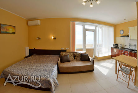 У номера своя терраса с выдвижным навесом- тентом, столом, стульями, видом на море, выходом на набережную и к пляжу.