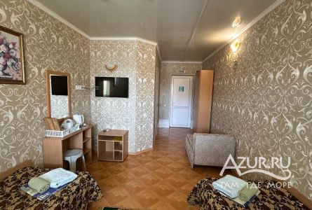 из номера — выход на лоджию, на окнах — москитные сетки, предоставляется фумигатор, полотенца, пластиковый таз.