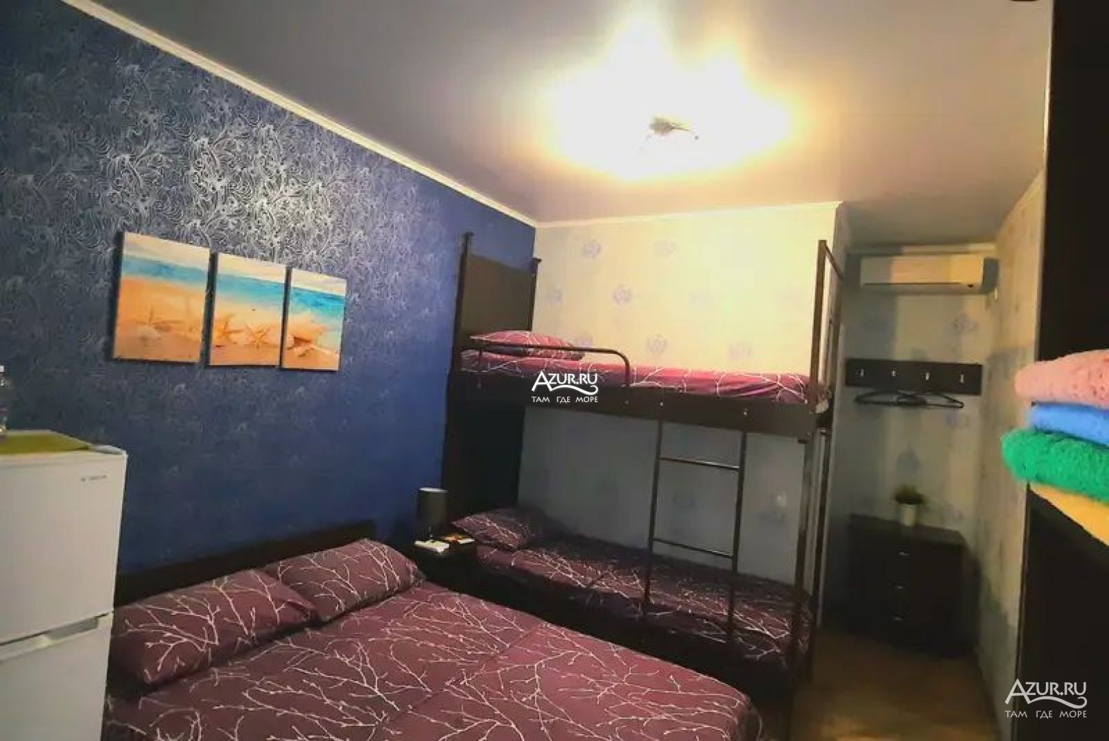 В номерах все необходимое для комфортного проживания: телевизор, кондиционер, санузел, холодильник, фен, постельное белье, полотенца.