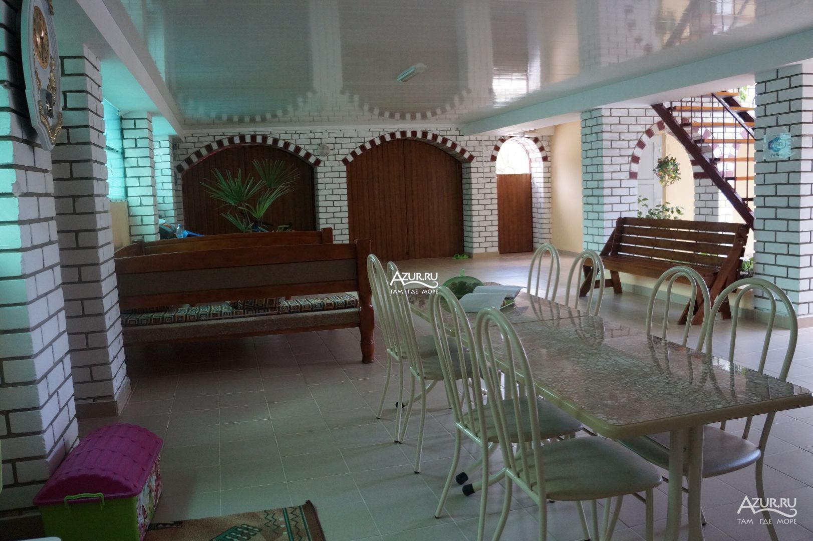 На 1-ом этаже расположена: хоз.комната, общая кухня, мангальная зона, зона отдыха с TV зоной , топчан(сурой).