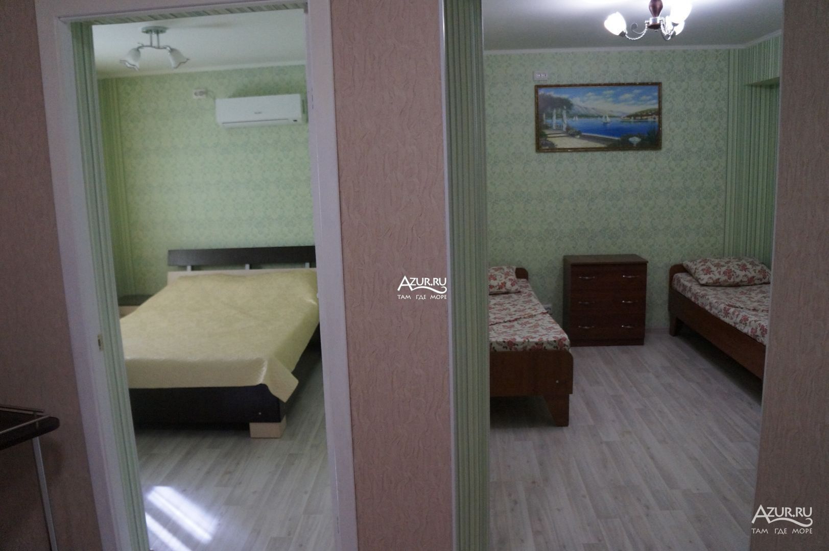 Мебель: Двухспальная и две односпальные кровати, раскладная софа, тумбочки, шкаф, стол, стулья.