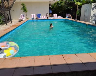 Здравствуйте! Хочу выразить благодарность за такой отдых. Номера чистые, территория облагорожена, чистый бассейн, детям точно будет нескучно! Море рядом. Еда великолепная, разнообразная. Если какие-то проблемы, то хозяева всегда придут на помощь. Есть стиральные машины (большой плюс) Мы остались очень довольны. Спасибо!