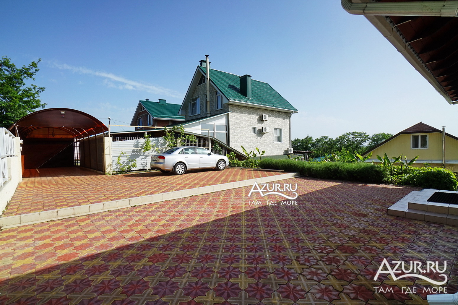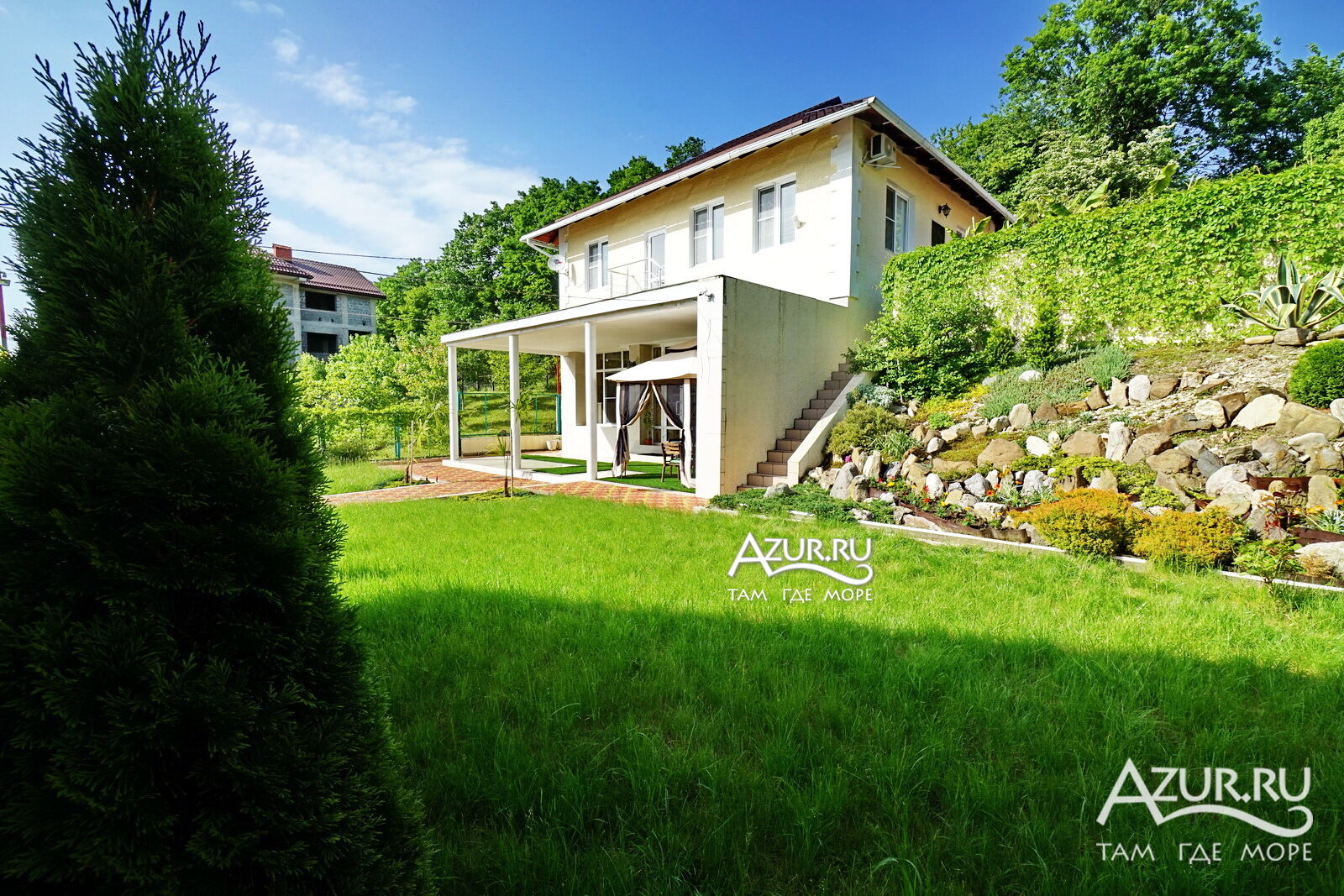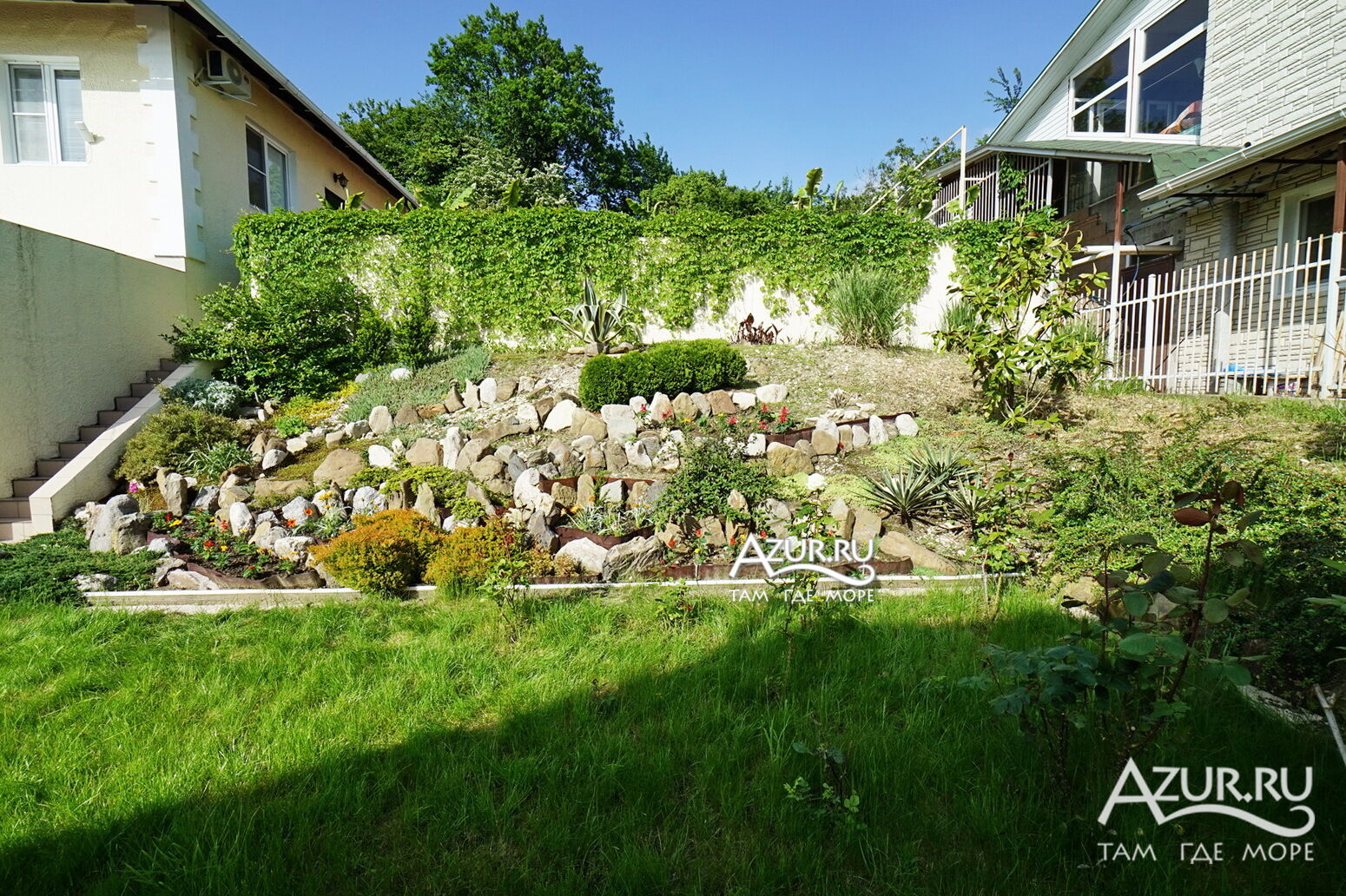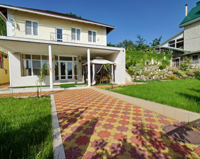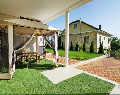 Дом расположен на участке 6 соток, просторная ухоженная территория с ландшафтный дизайном, посажены субтропические пальмы, а также садовые деревья, клумбы и газоны, что создаёт непередаваемую уютную атмосферу. Здесь созданы идеальные условия для отдыха. Тишина, чистый горный воздух, отличный берег, чистое море, немноголюдный пляж. Если вы приезжаете на отдых на автомобиле, то волноваться за сохранность не придется, на территории имеется крытая автостоянка (2 автомобильных места) и видеонаблюдение. Для детей есть надувной бассейн, летний душ на территории.