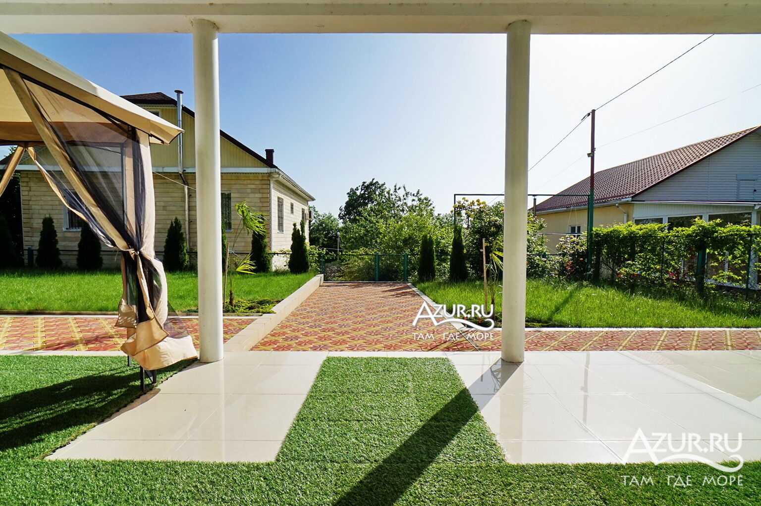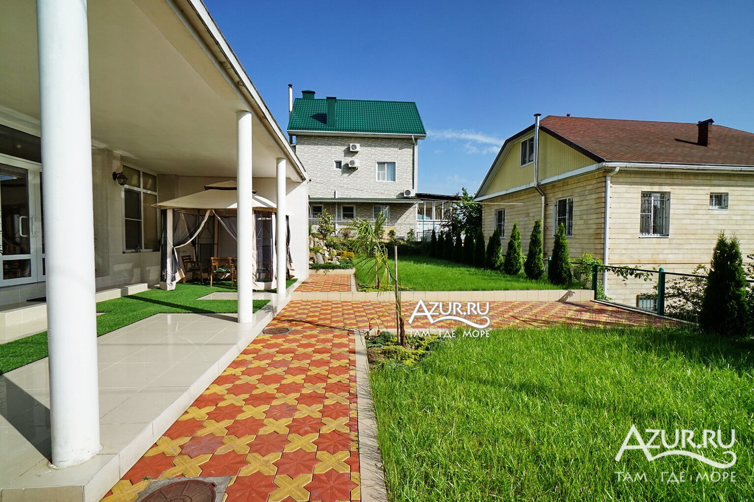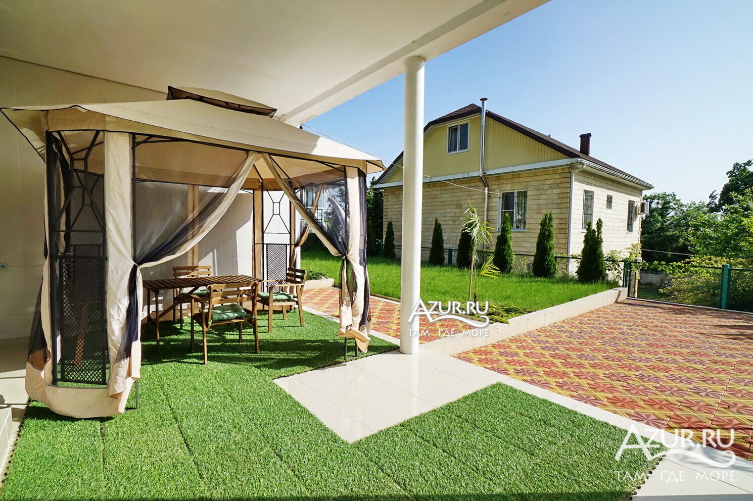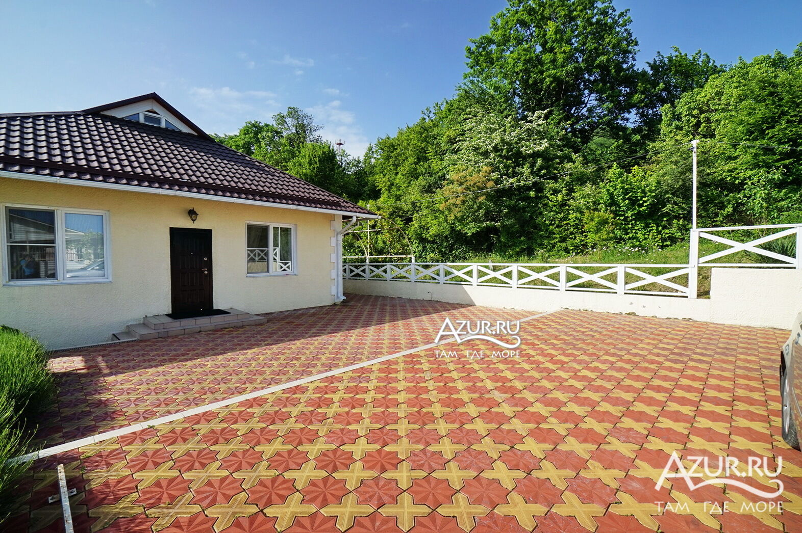 Дом расположен на участке 6 соток, просторная ухоженная территория с ландшафтный дизайном, посажены субтропические пальмы, а также садовые деревья, клумбы и газоны, что создаёт непередаваемую уютную атмосферу. Здесь созданы идеальные условия для отдыха. Тишина, чистый горный воздух, отличный берег, чистое море, немноголюдный пляж. Если вы приезжаете на отдых на автомобиле, то волноваться за сохранность не придется, на территории имеется крытая автостоянка (2 автомобильных места) и видеонаблюдение. Для детей есть надувной бассейн, летний душ на территории.
