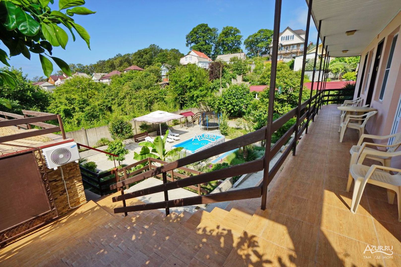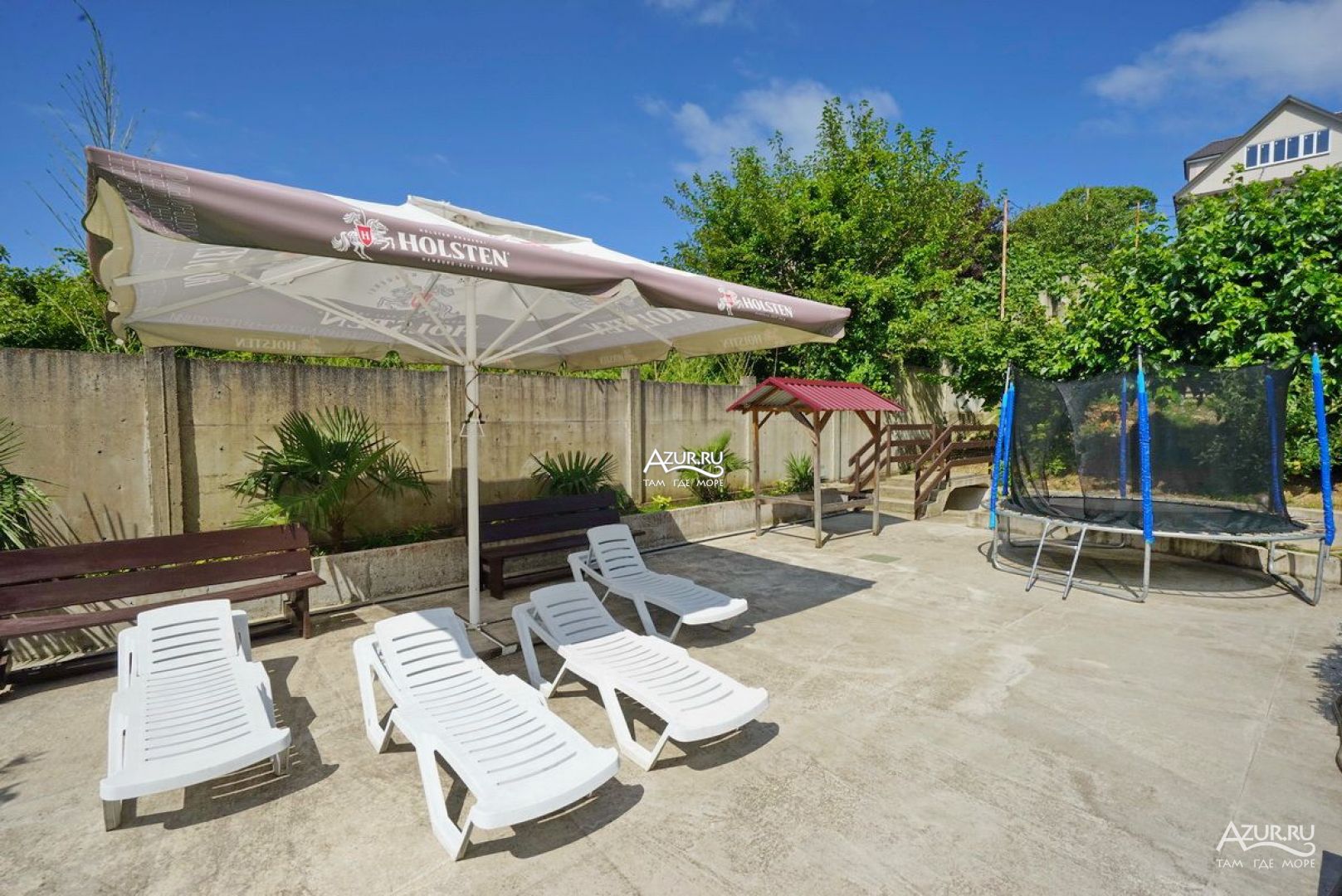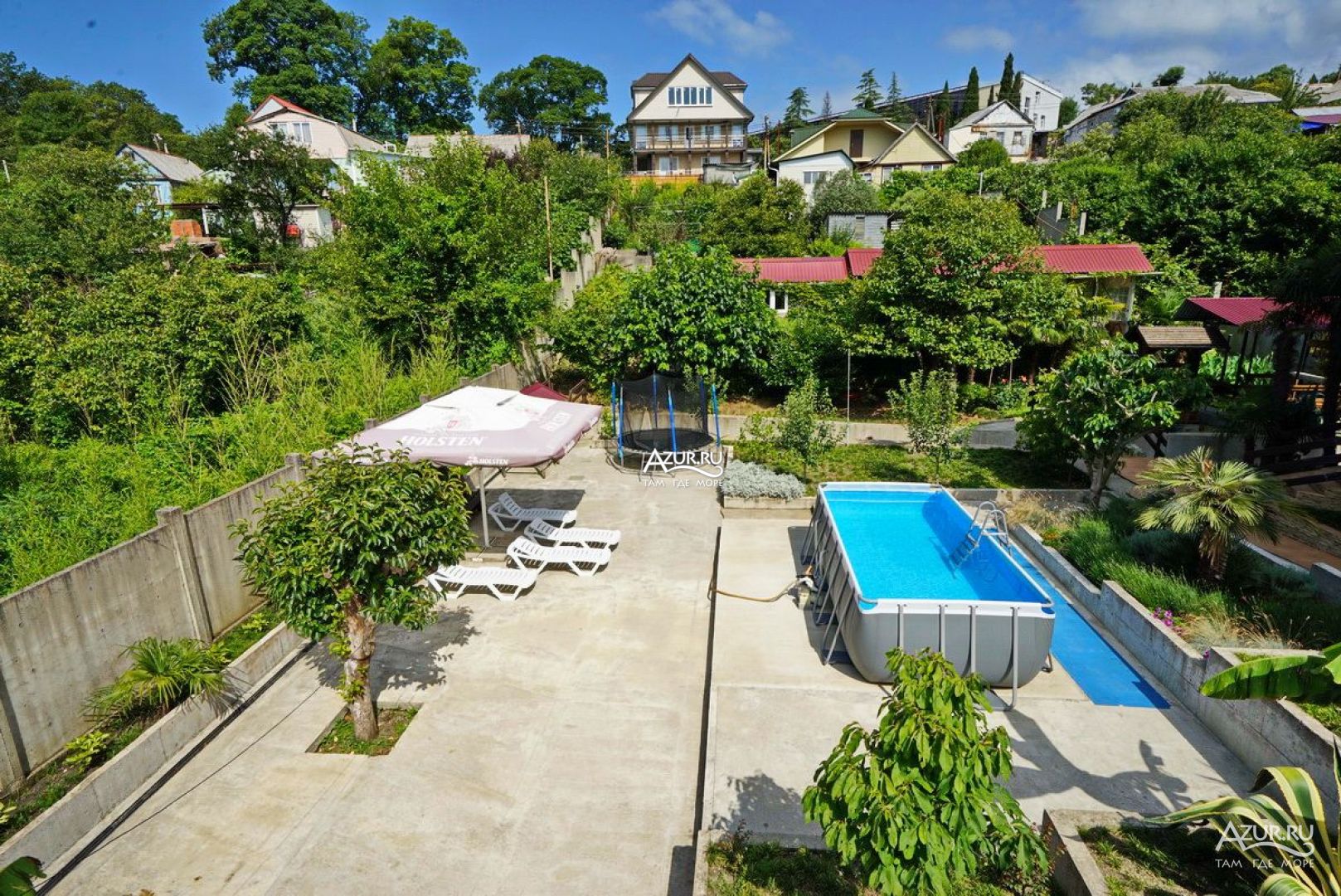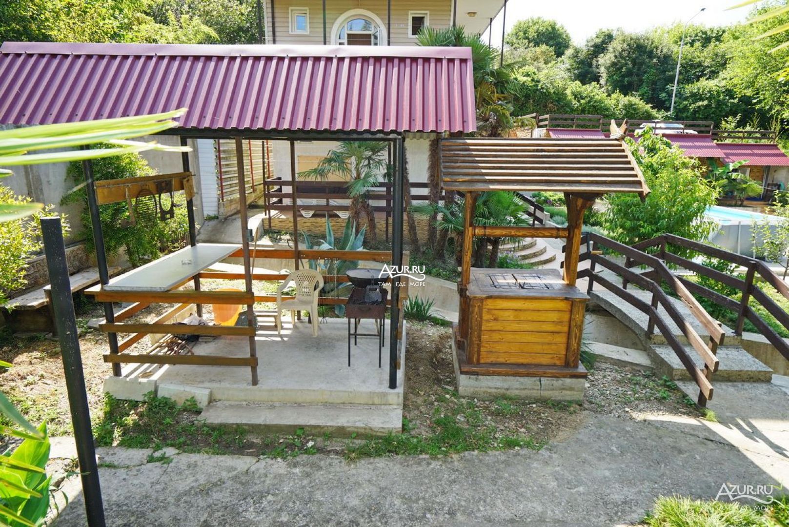 Все здорово Двор живописный. Особенно со второго этажа, вид, как сказка. Удобная большая кухня на открытом воздухе. С холодильниками. Можно готовить. Мангал рядом, и казан для плова. Магнит в 15 минут ходьбы. Море 5 минут ходьбы, и 15 минут, пляж получше. А 3 минуты ходьбы, Проводятся вечера с танго, тоесть милонги. Басейн, батут.. Шезлонги. Неделю жила. Собираюсь опять поехать через неделю. Мне понравилось. . Ещё отпуск будет.
