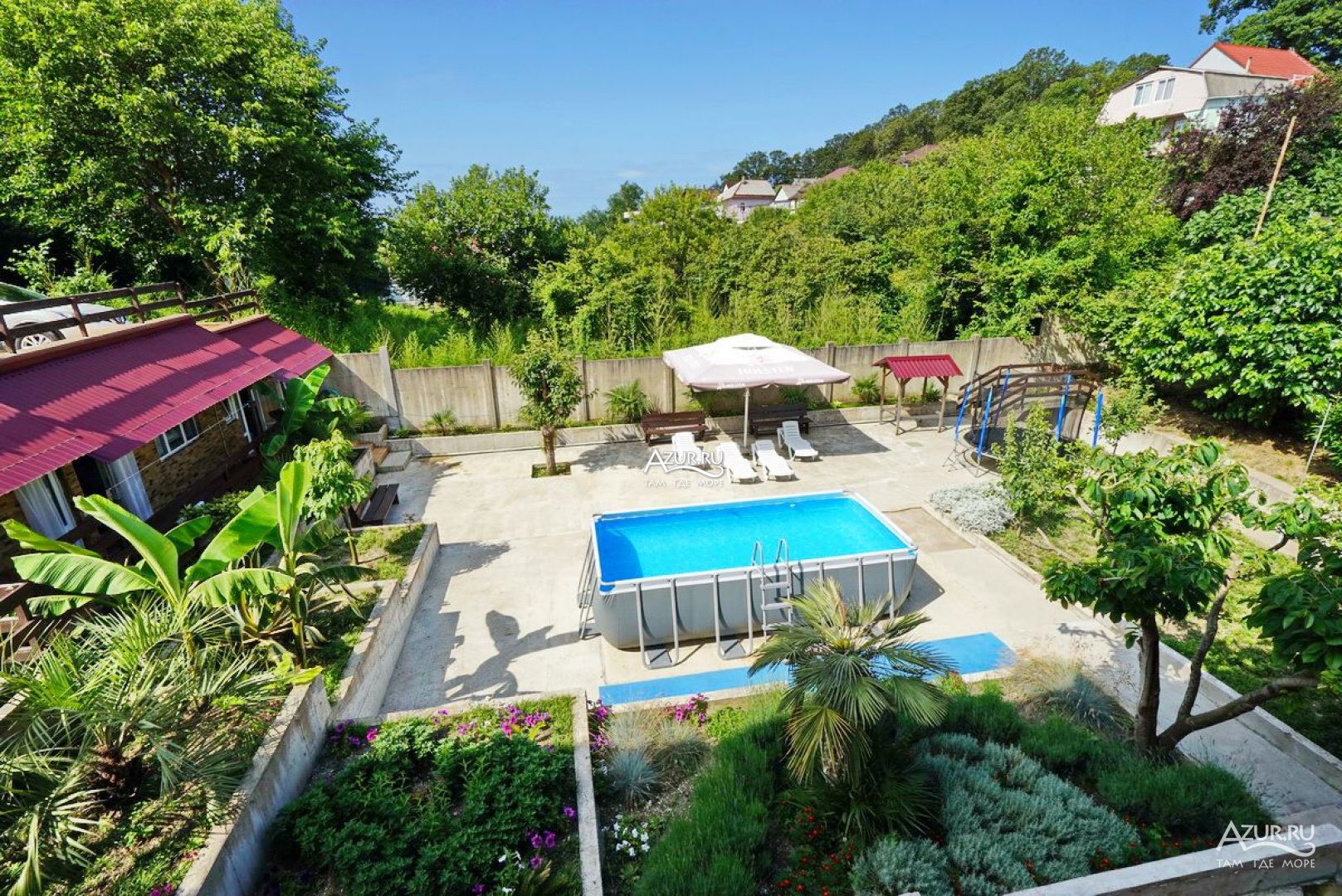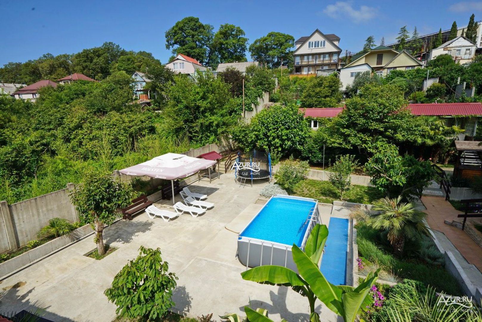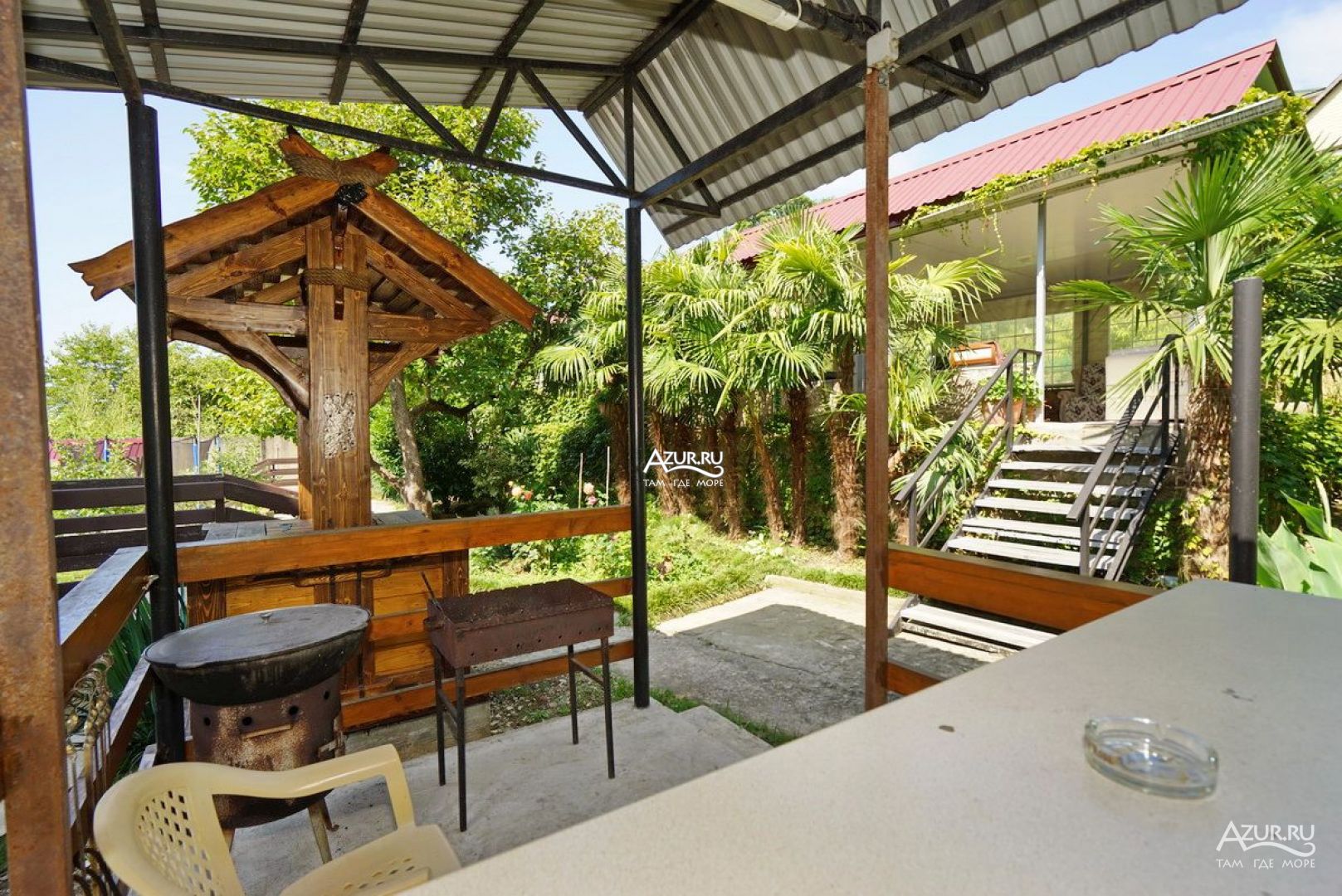 Все здорово Двор живописный. Особенно со второго этажа, вид, как сказка. Удобная большая кухня на открытом воздухе. С холодильниками. Можно готовить. Мангал рядом, и казан для плова. Магнит в 15 минут ходьбы. Море 5 минут ходьбы, и 15 минут, пляж получше. А 3 минуты ходьбы, Проводятся вечера с танго, тоесть милонги. Басейн, батут.. Шезлонги. Неделю жила. Собираюсь опять поехать через неделю. Мне понравилось. . Ещё отпуск будет.