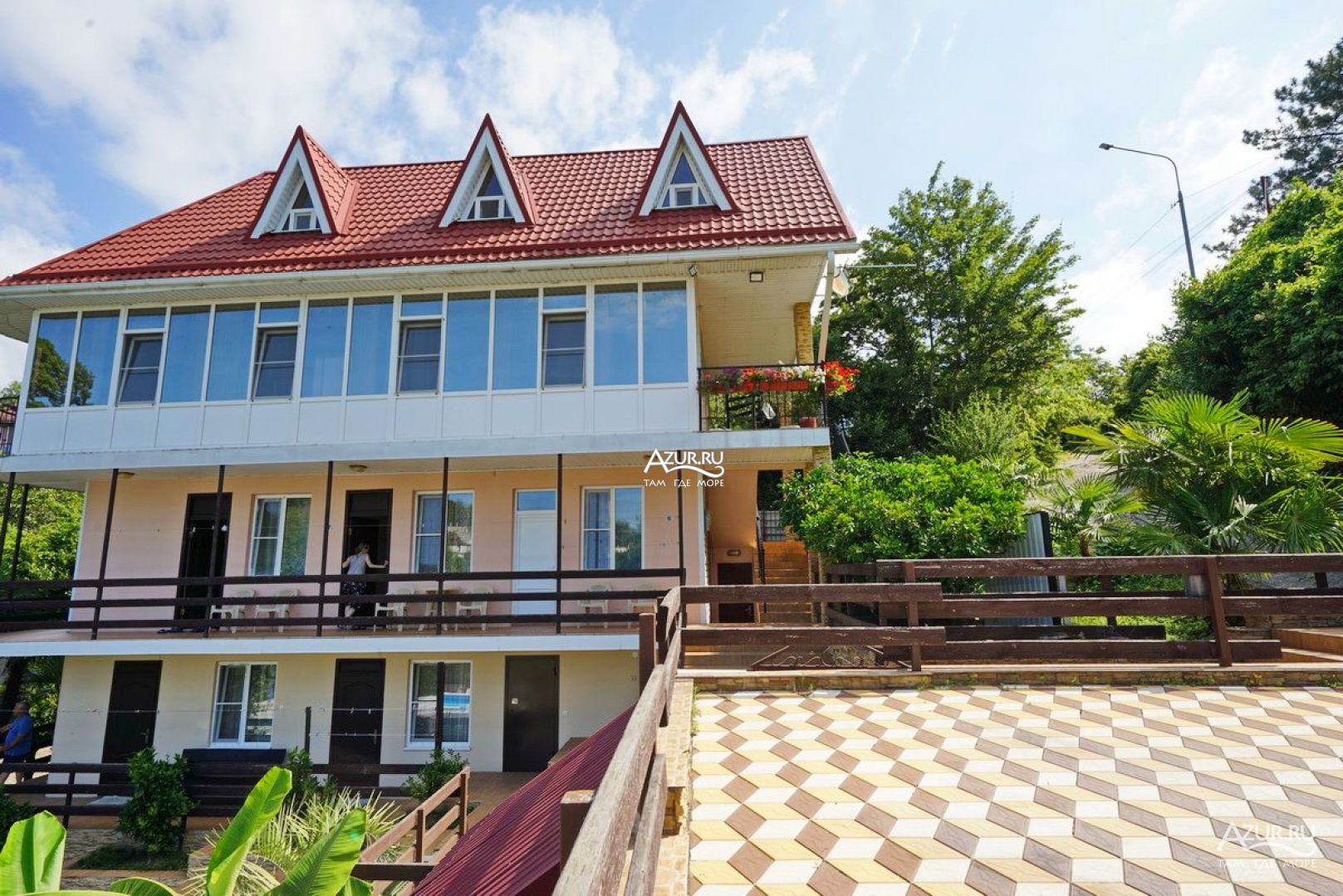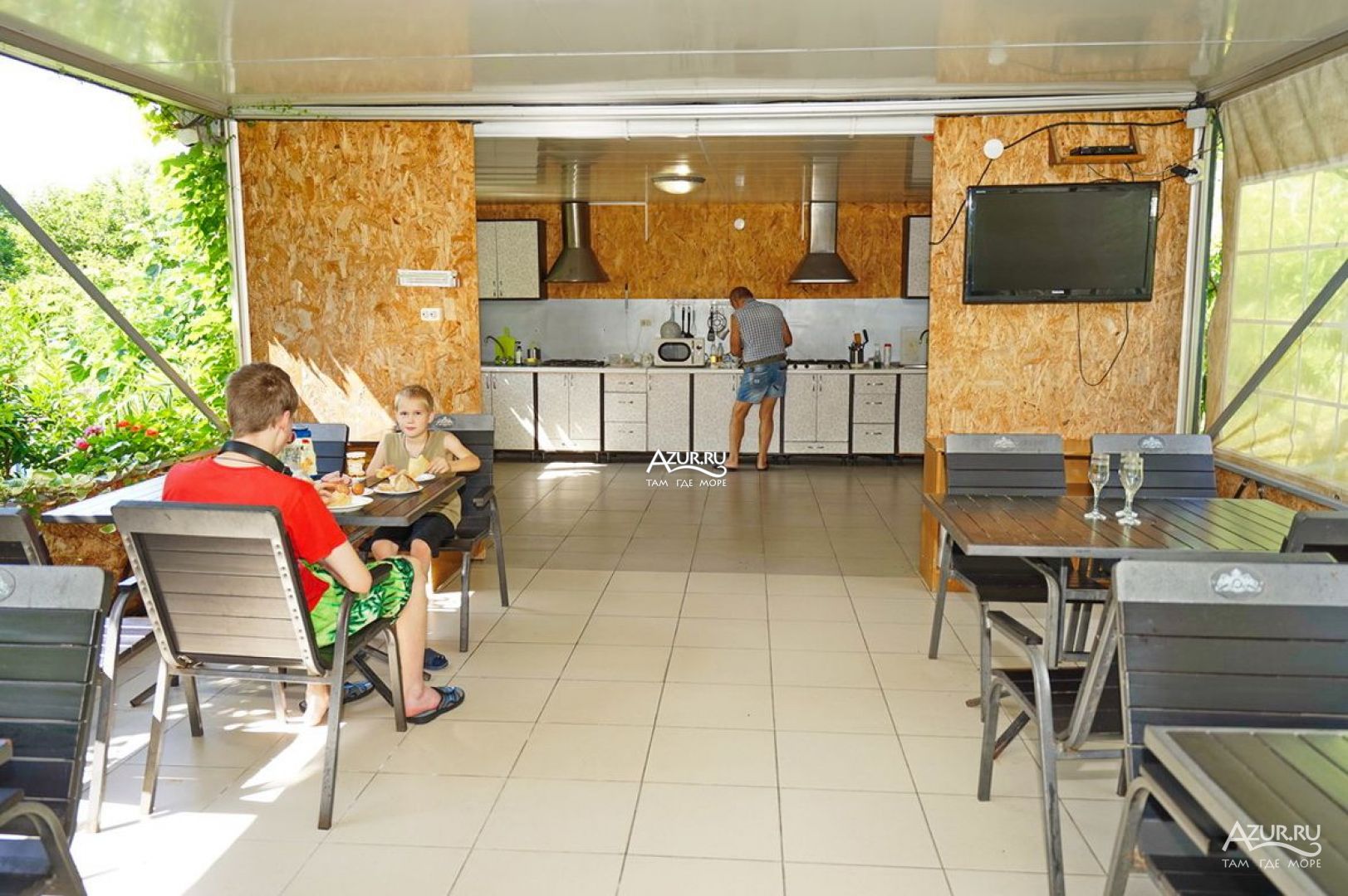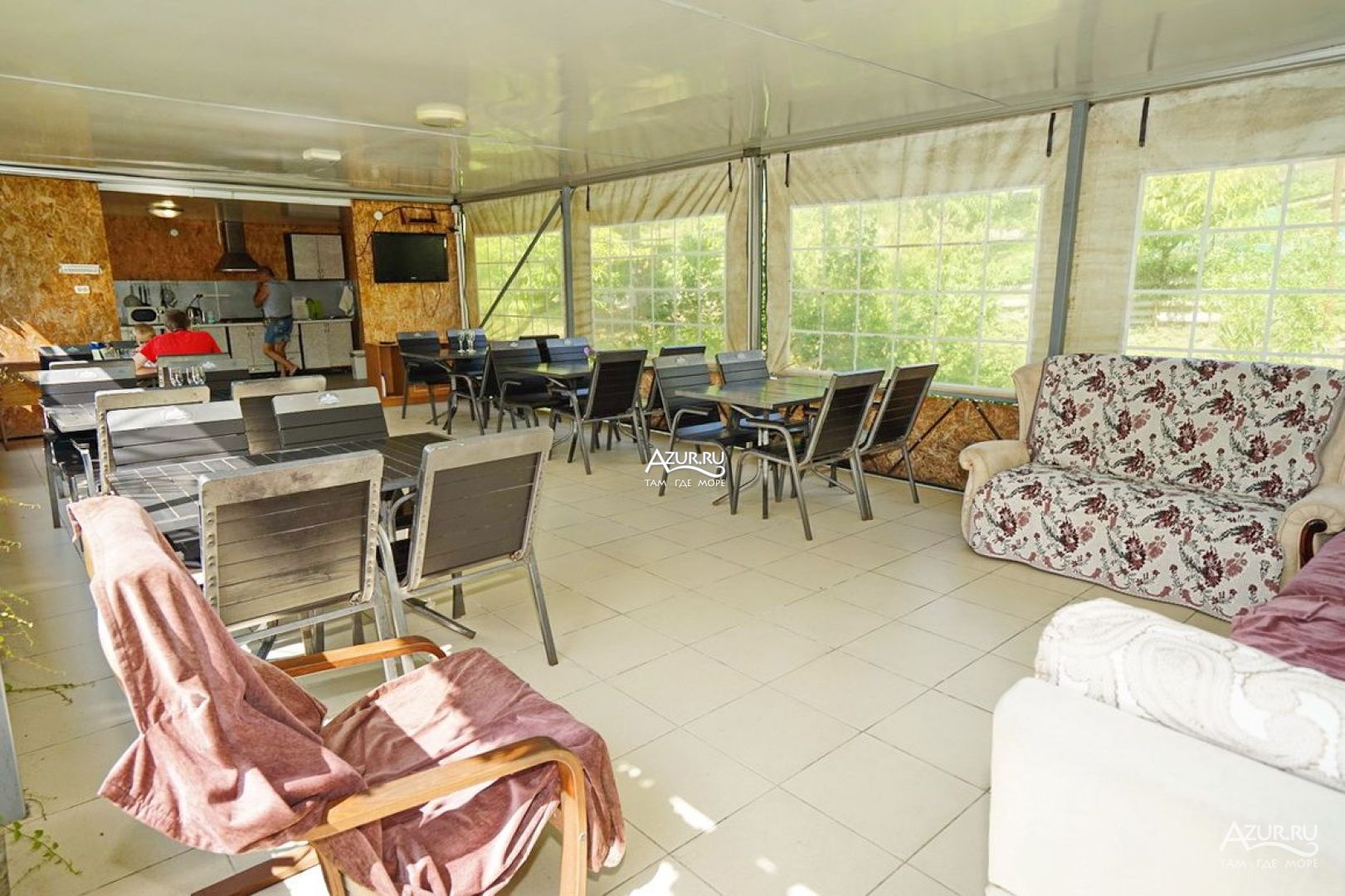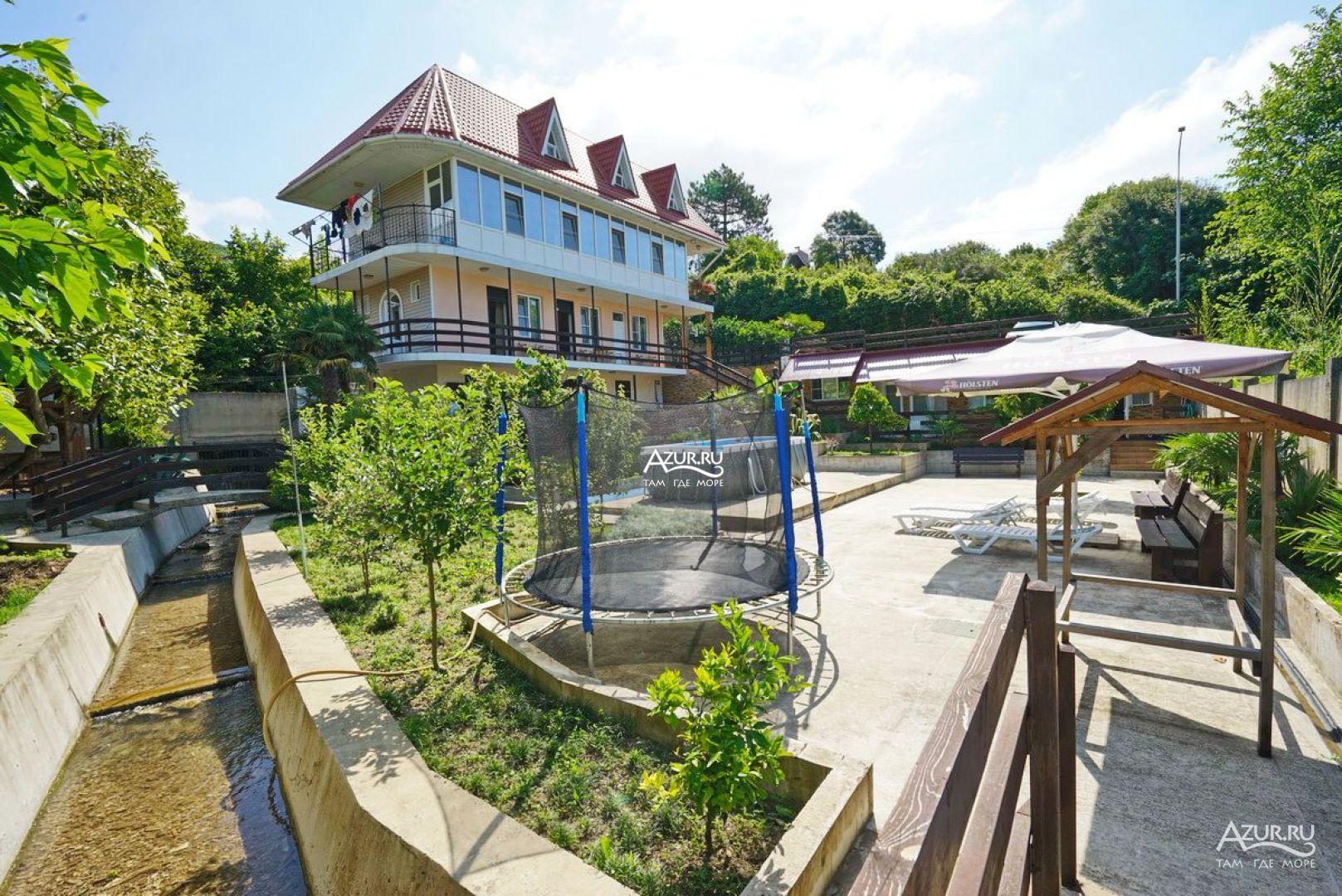 Все здорово Двор живописный. Особенно со второго этажа, вид, как сказка. Удобная большая кухня на открытом воздухе. С холодильниками. Можно готовить. Мангал рядом, и казан для плова. Магнит в 15 минут ходьбы. Море 5 минут ходьбы, и 15 минут, пляж получше. А 3 минуты ходьбы, Проводятся вечера с танго, тоесть милонги. Басейн, батут.. Шезлонги. Неделю жила. Собираюсь опять поехать через неделю. Мне понравилось. . Ещё отпуск будет.