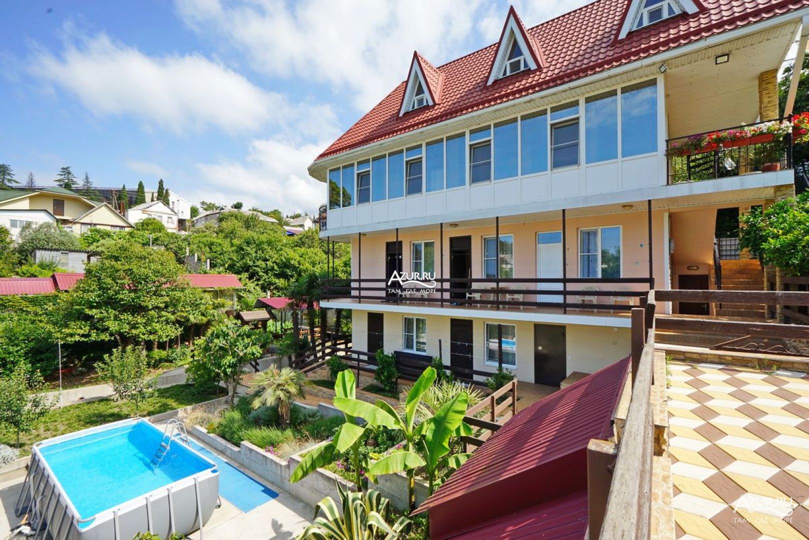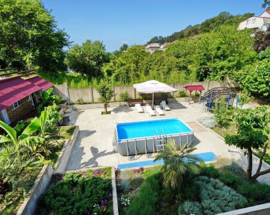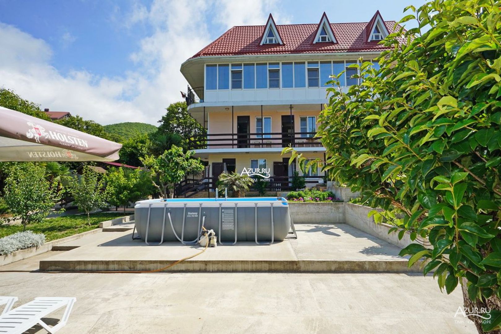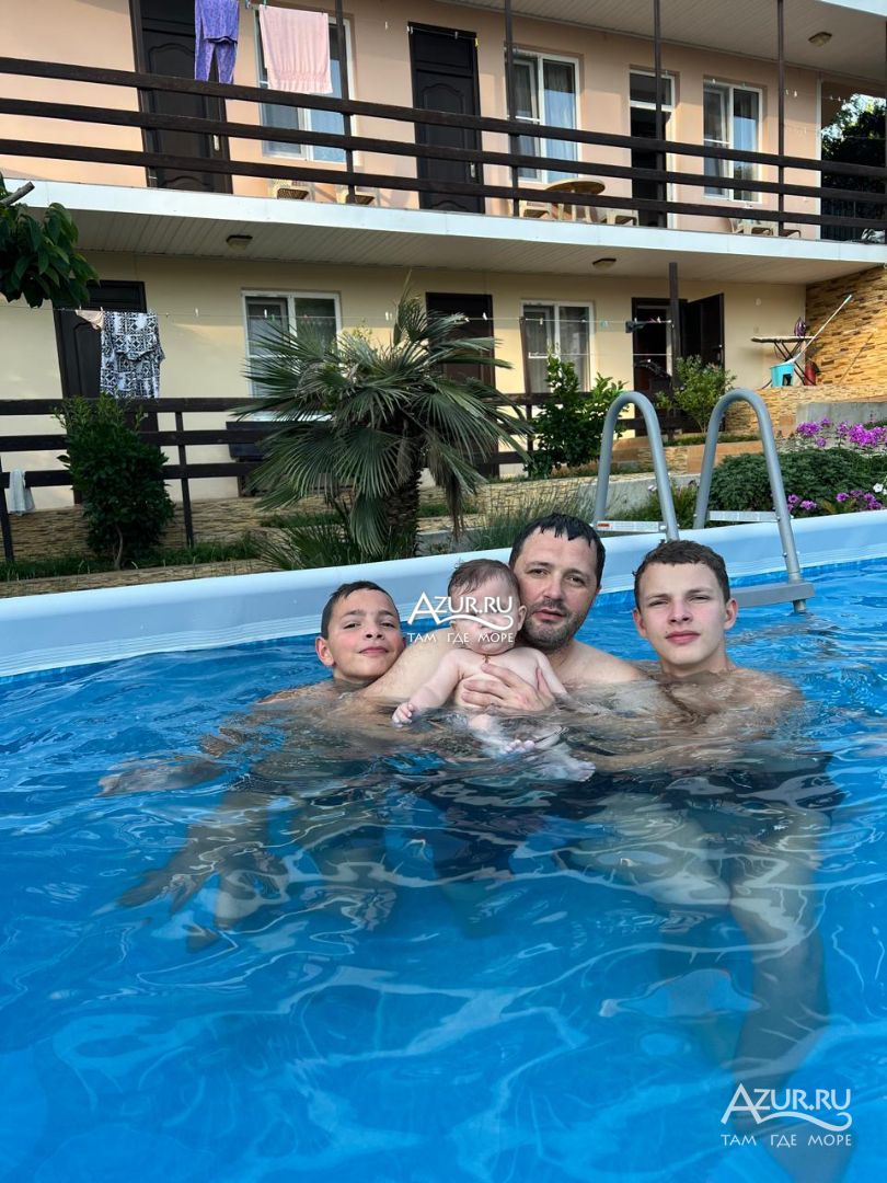 Примерно за 2,5 недели бронировали 2 номера т.к. ехали 2 семьи. Рассматривали номер с удобствами и номер с удобствами на этаже, потому что с удобствами остался только 1 номер, а на этаже всего 3 номера, и они свободны. В итоге решили взять все 3, чтоб туалет и душ были только наши. В 2 номерах были бы взрослые, в 1 дети. Предоплата была внесена за сутки, за 3 номера и даже больше, сумму округлили. За неделю мне пишет хозяйка, что наш один номер отдала и что нам дети помешают что ли, если будут жить с нами в одних номерах с нами? Пыталась, что-то объяснять, что бизнес так не ведется. Мне какая разница как ведется этот бизнес? Я оплатила за комфорт и чтоб в итоге санузел и душевая были на 2 семьи, а не на 3. Мы конечно были не много в шоке, и тут нам стали предлагать номера у соседей. Но я выбирала изначально гостевые дома с бассейном, специально ставила сортировку. В итоге мы решили взять 2 номера. Т.к. за неделю найти 2 номера с бассейном и хорошей территорией сложно. Я когда за 3 недели то искала уже все нормальное было занято. Приехали сначала все понравилось, даже с учетом что нам досталось 2 номера. Территория ухожена, много зелени, мангальная зона, большая общая кухня, номера – все устроило. Вечером дошли до берега, он конечно не очень, но чуть дальше метров 700 есть нормальный пляж, крутоват спуск/подъем- пожилым, с лишним весом и т.п. тяжело будет, но к природе нет претензий. Вернулись искупались в бассейне. А утром «ВИШЕНКА НА ТОРТЕ» бассейн только для детей, якобы были случаи что кто –то брезгует. Что? По сути это оскорбление в нашей нечистоплотности, мы душ принимаем 2 раза в день. И опять если кто-то брезгует, то он пусть не пользуется. Я когда искала жилье ставила параметр бассейн не просто так, а чтоб все могли его использовать. Тем более в описании указано большой каркасный бассейн. Если было бы написано, что он только для детей – этот гостевой дом я бы даже не рассматривала к бронированию. И как люди которые типо брезгают – в море то купаются? И это еще не все!!! Наши дети и еще дети других отдыхающих в бассейне находились с надувными предметами, хозяйка сказала убрать т.к. они после моря соленые и вода может зацвести. Я сказала, что у наших детей он новый и море еще не был, она что-то там бурчала. И вообще то соль - это природный антисептик, от соли зацвести уж точно не может. В какой то, день дети снова и наши, и другие были с надувными предметами, резвились им явно было весло. А хозяйка, проходя мимо недовольным голосом – вам не мешают, места не мало? Если бы детям, что-то не нравилось бы они этого не делали бы! Лежаки и территория у бассейна вообще бесполезная зона, т.к. дети не загорают, а взрослым смысла нет – потому что купаться в нем нельзя, За все время, что мы там были не видела ни одного загорающего взрослого. Потому что, чтоб охладиться это надо идти в душ, а это и 2 и 3 и 4 этаж! И тоже минус на территории нет ладно душа, но и туалета. Это очень не удобно, что они только в номерах. Вот взял вечером пива или вина, сидишь в кухне. которая прилично далеко от номера и что б сходить в туалет нарезаешь круги по территории и этажам. И это еще не все! Шуметь с 14.00 до 16.00 нельзя – тихий час, а шумели только дети. Купаясь в бассейне. Т.е. ты приехал отдыхать, а тебе кучу запретов, как в лагере каком-то! Жесть, каждый год ездим отдыхать, но с таким столкнулась впервые. Мы едем не в гости, а п