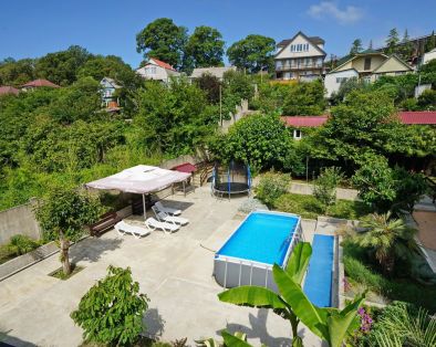 Отдыхаем семьей в этом месте уже третий раз. Замечательная ухоженная территория. Жили в большом номере с тремя детьми. Чистота и уют в номере поддерживается постоянно. Во дворе есть замечательные фруктовые деревья. Также есть бассейн в котором поддерживается чистота. Автостоянка удобная. Замечательная беседка-кухня, где не только можно приготовить пищу но и посидеть вечером, никому при этом не мешая и никого не беспокоя. Оборудована уютная зона мангала. К морю дорога тернистая, что добавляет дополнительную аэробную нагрузку.