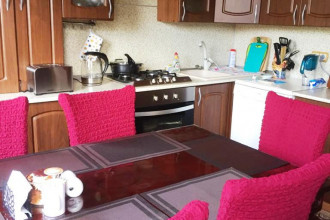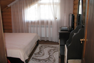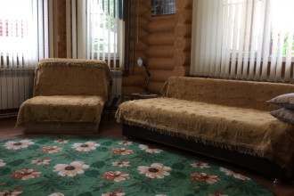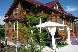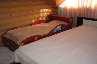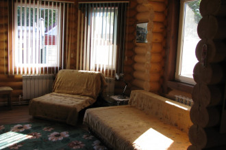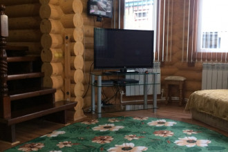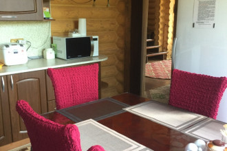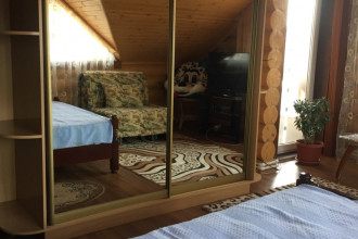 сдаётся в аренду посуточно двухэтажный дом из бревна. Первый этаж: гостиная, кухня, ванная с туалетом. Второй этаж: две спальные комнаты и туалет. Есть балкон на втором этаже и на первом этаже.