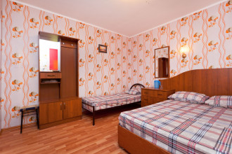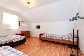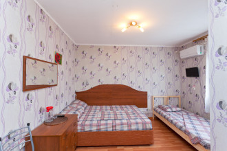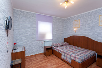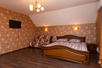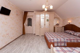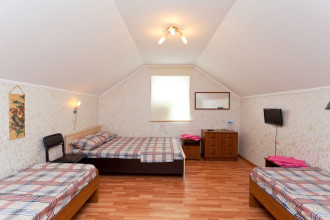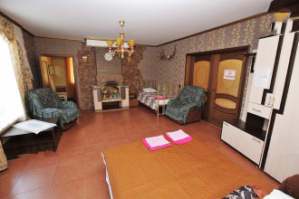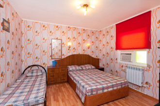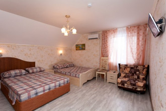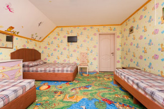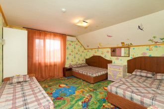 Во дворе имеется оборудованная зона для барбекю со всем необходимым инвентарем, шезлонги для загара, детская площадка. 3-этажное здание гостевого дома располагает 19-ю комфортабельными номерами. Гостевой дом также специализируется на размещении командировочных сотрудников в межсезонье.