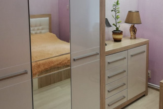 Мебель: двуспальная кровать или диван, комод с зеркалом, шкаф-прихожая